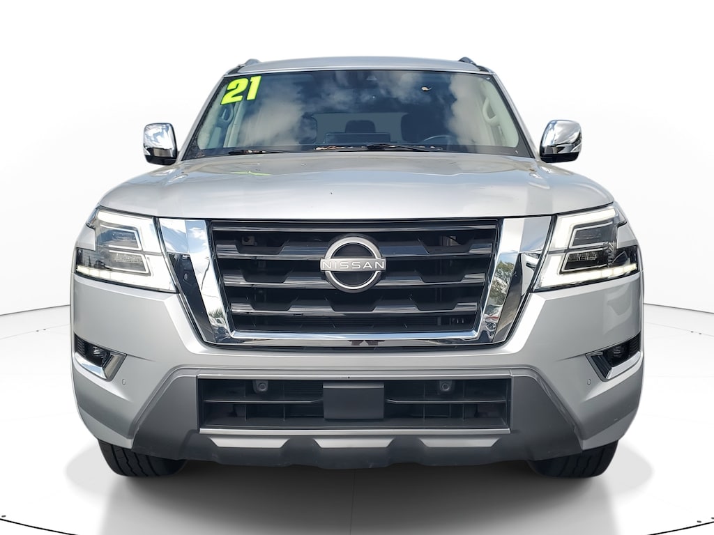 THIS VEHICLE IS EQUIPT WITH THE FOLLOWING FEATURES AND OPTIONS: Cargo Package, SV Appearance Package (20 Aluminum Alloy Wheels, 20 Wheels, Auto-Dimming Interior Rear-View Mirror, Front Fog Lights, and Power Lift Gate), 18 Alloy Wheels, 2.94 Axle Ratio, 3rd row seats: split-bench, 4-Wheel Disc Brakes, 6 Speakers, ABS brakes, Air Conditioning, Alloy wheels, AM/FM radio: SiriusXM, Anti-whiplash front head restraints, Auto High-beam Headlights, Auto tilt-away steering wheel, Auto-leveling suspension, Automatic temperature control, Brake assist, Bumpers: body-color, Delay-off headlights, Driver door bin, Driver vanity mirror, Dual front impact airbags, Dual front side impact airbags, Electronic Stability Control, Emergency communication system: NissanConnect Services, Four wheel independent suspension, Front anti-roll bar, Front Bucket Seats, Front Center Armrest, Front dual zone A/C, Front reading lights, Fully automatic headlights, Heated door mirrors, Heated Front Bucket Seats, Heated front seats, Illuminated entry, Leather Shift Knob, Leatherette Seat Trim, Low tire pressure warning, Navigation System, NissanConnect featuring Apple CarPlay and Android Auto, Occupant sensing airbag, Outside temperature display, Overhead airbag, Overhead console, Panic alarm, Passenger door bin, Passenger vanity mirror, Power door mirrors, Power driver seat, Power passenger seat, Power steering, Power windows, Radio: NissanConnect w/SiriusXM, Rear air conditioning, Rear anti-roll bar, Rear reading lights, Rear seat center armrest, Rear window defroster, Rear window wiper, Reclining 3rd row seat, Remote keyless entry, Security system, Speed control, Speed-sensing steering, Speed-Sensitive Wipers, Split folding rear seat, Spoiler, Steering wheel mounted audio controls, Tachometer, Telescoping steering wheel, Tilt steering wheel, Traction control, Trip computer, Turn signal indicator mirrors, Variably intermittent wipers, and Voltmeter.