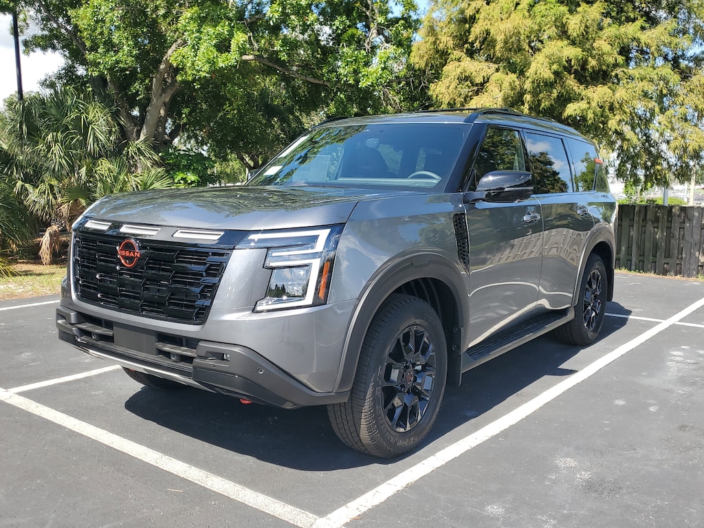 New 2025 Nissan Armada PRO-4X [B94] REAR BUMPER PROTECTOR, GUN METALLIC, [L94] PRO-4X CARPETED FLOOR MATS -inc: cargo area protector first aid kit and cargo blocks, [B95] ROOF RAIL CROSS BARS, CHARCOAL PRO-4X UNIQUE QUILTED LEATHER SEAT TRIM -inc: stitching, [T11] FRONT TOW HOOKS, [B93] PRO-4X MUD GUARDS, Turbocharged, Smart Device Integration, Requires Subscription, Four Wheel Drive, Locking/Limited Slip Differential, Tow Hitch, Air Suspension, Active Suspension, Power Steering, Air Suspension, Air Suspension, ABS, 4-Wheel Disc Brakes, Brake Assist, Aluminum Wheels, Tires - Front All-Terrain, Tires - Rear All-Terrain, Temporary Spare Tire, Tow Hooks, Tow Hooks, Heated Mirrors, Power Mirror(s), Integrated Turn Signal Mirrors, Power Folding Mirrors, Rear Defrost, Privacy Glass, Intermittent Wipers, Variable Speed Intermittent Wipers, Rain Sensing Wipers, Rear Spoiler, Running Boards/Side Steps, Remote Trunk Release, Power Liftgate, Power Door Locks, Daytime Running Lights, Automatic Headlights, LED Headlights, Automatic Highbeams, Fog Lamps, AM/FM Stereo, Navigation System, Premium Sound System, Satellite Radio, MP3 Capability, Bluetooth Connection, Telematics, Auxiliary Audio Input, HD Radio, WiFi Hotspot, Smart Device Integration, Requires Subscription, MP3 Capability, Steering Wheel Audio Controls, Auxiliary Audio Input, Bluetooth Connection, Power Driver Seat, Power Passenger Seat, Bucket Seats, Heated Front Seat(s), Driver Adjustable Lumbar, Passenger Adjustable Lumbar, Seat Memory, Pass-Through Rear Seat, Rear Bench Seat, Adjustable Steering Wheel, Trip Computer, Power Windows, WiFi Hotspot, 3rd Row Seat, Leather Steering Wheel, Heated Steering Wheel, Keyless Entry, Power Door Locks, Keyless Start, Keyless Entry, Power Door Locks, Universal Garage Door Opener, Cruise Control, Adaptive Cruise Control, Climate Control, Multi-Zone A/C, A/C, A/C, Rear A/C, Woodgrain Interior Trim, Leather Seats, Driver Vanity Mirror, Passenger Vanity Mirror, Driver Illuminated Vanity Mirror, Passenger Illuminated Visor Mirror, Auto-Dimming Rearview Mirror, Smart Device Integration, Mirror Memory, Seat Memory, Remote Engine Start, Keyless Start, Navigation System, Power Windows, Power Door Locks, Trip Computer, Mirror Memory, Seat Memory, Security System, Immobilizer, Cruise Control Steering Assist, Traction Control, Stability Control, Traction Control, Front Side Air Bag, Rear Parking Aid, Automatic Parking, Blind Spot Monitor, Cross-Traffic Alert, Rear Collision Mitigation, Lane Departure Warning, Lane Keeping Assist, Lane Departure Warning, Front Collision Mitigation, Driver Monitoring, Telematics, Requires Subscription, Aerial View Display System, Tire Pressure Monitor, Driver Air Bag, Passenger Air Bag, Front Head Air Bag, Rear Head Air Bag, Passenger Air Bag Sensor, Knee Air Bag, Child Safety Locks, Back-Up Camera