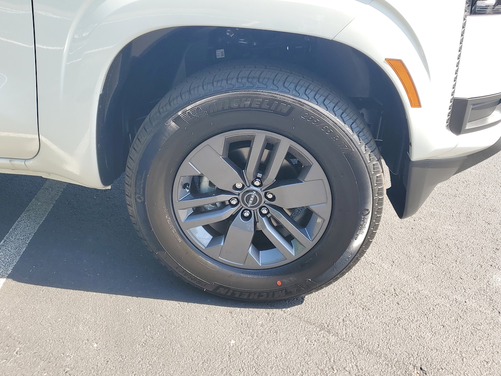 New 2025 Nissan Frontier SV CHARCOAL PREMIUM CLOTH SEAT TRIM, GLACIER WHITE, Rear Wheel Drive, Power Steering, ABS, 4-Wheel Disc Brakes, Brake Assist, Brake Actuated Limited Slip Differential, Aluminum Wheels, Tires - Front All-Season, Tires - Rear All-Season, Conventional Spare Tire, Power Mirror(s), Sliding Rear Window, Privacy Glass, Intermittent Wipers, Variable Speed Intermittent Wipers, Power Door Locks, Automatic Headlights, Automatic Highbeams, AM/FM Stereo, Satellite Radio, MP3 Capability, Steering Wheel Audio Controls, Bluetooth Connection, Auxiliary Audio Input, Smart Device Integration, Requires Subscription, MP3 Capability, Bluetooth Connection, Power Driver Seat, Bucket Seats, Driver Adjustable Lumbar, Pass-Through Rear Seat, Adjustable Steering Wheel, Trip Computer, WiFi Hotspot, Keyless Start, Keyless Entry, Power Door Locks, Cruise Control, Adaptive Cruise Control, A/C, Cloth Seats, Driver Vanity Mirror, Passenger Vanity Mirror, Smart Device Integration, Power Windows, Sliding Rear Window, Power Door Locks, Trip Computer, Immobilizer, Security System, Traction Control, Stability Control, Traction Control, Front Side Air Bag, Telematics, Requires Subscription, Rear Parking Aid, Blind Spot Monitor, Cross-Traffic Alert, Rear Collision Mitigation, Lane Departure Warning, Front Collision Mitigation, Driver Monitoring, Tire Pressure Monitor, Driver Air Bag, Passenger Air Bag, Front Head Air Bag, Rear Head Air Bag, Passenger Air Bag Sensor, Front Side Air Bag, Rear Side Air Bag, Knee Air Bag, Back-Up Camera