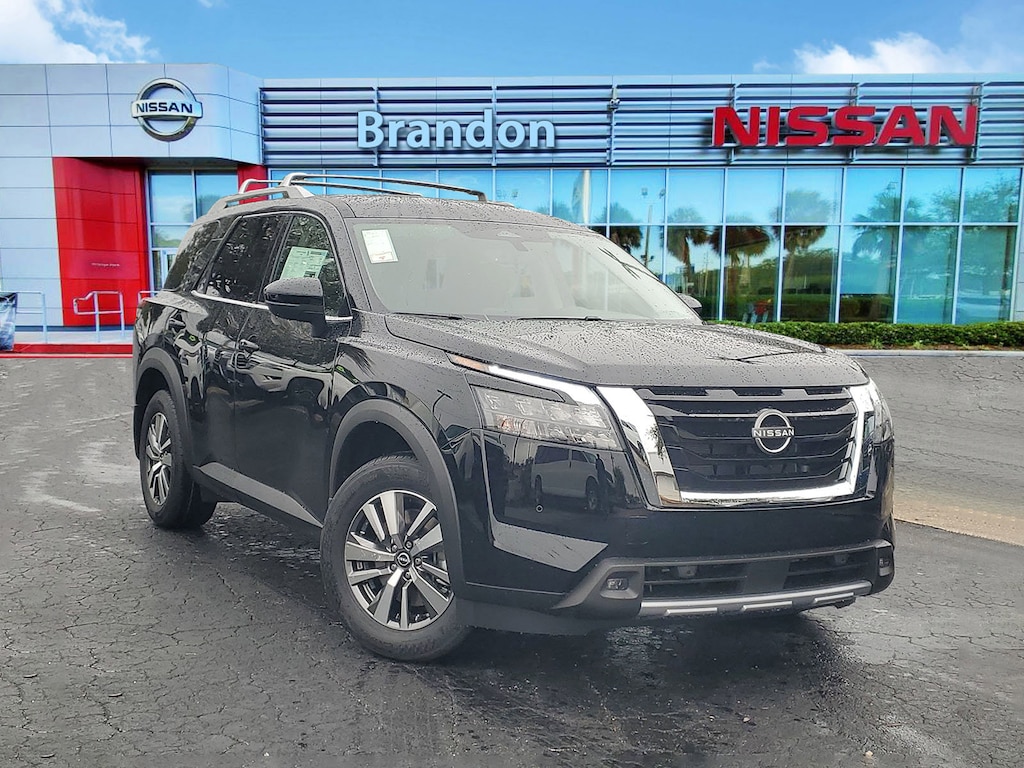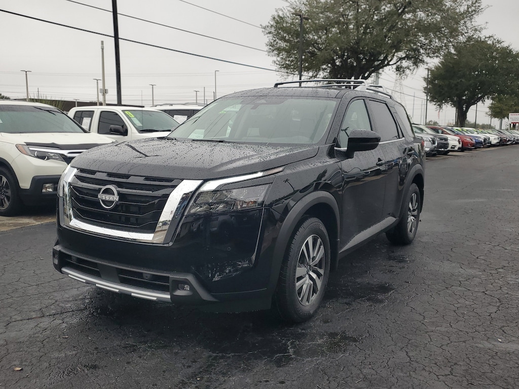 New 2025 Nissan Pathfinder SL [S10] LED FOG LAMPS, SUPER BLACK, CHARCOAL LEATHER-APPOINTED SEATING SURFACES, [B93] CROSS BARS, [L92] BENCH SEAT CARPETED FLOOR MATS (SET OF 4), [H92] NISSAN USB CHARGING CABLE SET, Smart Device Integration, Requires Subscription, Front Wheel Drive, Power Steering, ABS, 4-Wheel Disc Brakes, Brake Assist, Brake Actuated Limited Slip Differential, Aluminum Wheels, Tires - Front All-Season, Tires - Rear All-Season, Temporary Spare Tire, Heated Mirrors, Power Mirror(s), Integrated Turn Signal Mirrors, Rear Defrost, Privacy Glass, Intermittent Wipers, Variable Speed Intermittent Wipers, Rear Spoiler, Remote Trunk Release, Power Liftgate, Power Door Locks, Daytime Running Lights, Automatic Headlights, LED Headlights, Automatic Highbeams, AM/FM Stereo, Satellite Radio, MP3 Capability, Bluetooth Connection, Smart Device Integration, Requires Subscription, MP3 Capability, Steering Wheel Audio Controls, Auxiliary Audio Input, Bluetooth Connection, Power Driver Seat, Power Passenger Seat, Bucket Seats, Heated Front Seat(s), Driver Adjustable Lumbar, Passenger Adjustable Lumbar, Pass-Through Rear Seat, Rear Bench Seat, Adjustable Steering Wheel, Trip Computer, Power Windows, WiFi Hotspot, 3rd Row Seat, Leather Steering Wheel, Heated Steering Wheel, Keyless Entry, Power Door Locks, Keyless Start, Keyless Entry, Power Door Locks, Universal Garage Door Opener, Cruise Control, Adaptive Cruise Control, Climate Control, Multi-Zone A/C, A/C, A/C, Rear A/C, Leather Seats, Driver Vanity Mirror, Passenger Vanity Mirror, Driver Illuminated Vanity Mirror, Passenger Illuminated Visor Mirror, Auto-Dimming Rearview Mirror, Smart Device Integration, Remote Engine Start, Keyless Start, Navigation System, Power Windows, Power Door Locks, Trip Computer, Security System, Immobilizer, Cruise Control Steering Assist, Traction Control, Stability Control, Traction Control, Front Side Air Bag, Cross-Traffic Alert, Rear Collision Mitigation, Front Collision Mitigation, Driver Monitoring, Telematics, Requires Subscription, Blind Spot Monitor, Lane Departure Warning, Lane Keeping Assist, Lane Departure Warning, Rear Parking Aid, Aerial View Display System, Tire Pressure Monitor, Driver Air Bag, Passenger Air Bag, Front Head Air Bag, Rear Head Air Bag, Passenger Air Bag Sensor, Front Side Air Bag, Rear Side Air Bag, Knee Air Bag, Child Safety Locks, Back-Up Camera