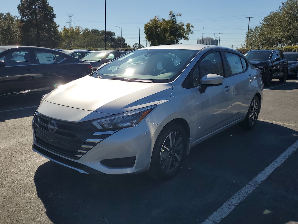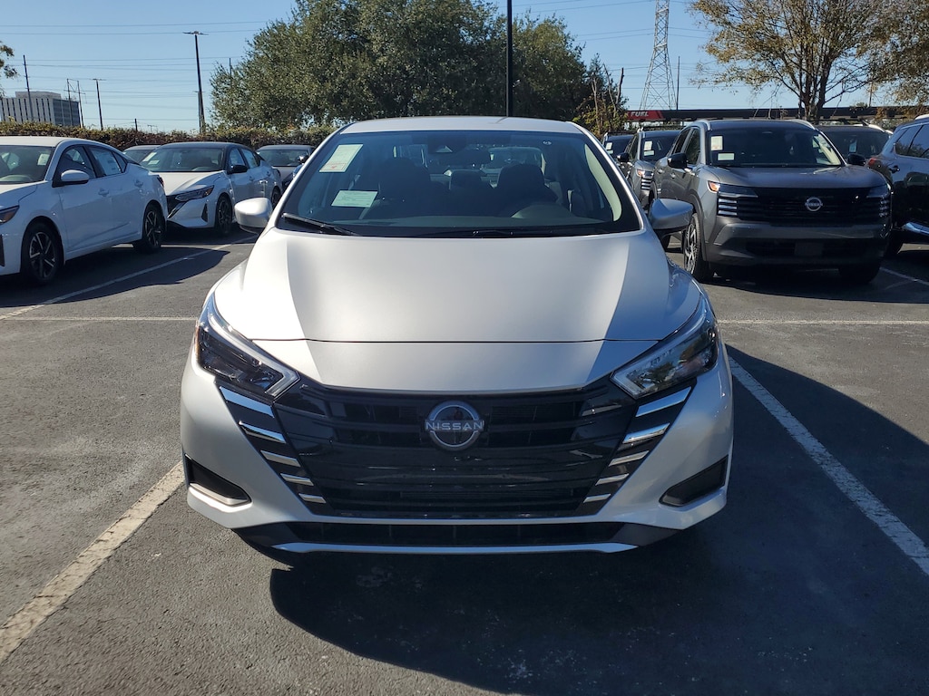 New 2025 Nissan Versa SV [B93] SPLASH GUARDS, BRILLIANT SILVER METALLIC, GRAPHITE UPGRADED CLOTH SEAT TRIM, [L93] CARPETED FLOOR MATS & TRUNK MAT (5-PIECE SET), [M92] TRUNK PACKAGE -inc: Trunk Net Shopping Bag Hooks, Front Wheel Drive, Power Steering, ABS, Front Disc/Rear Drum Brakes, Brake Assist, Aluminum Wheels, Tires - Front Performance, Tires - Rear Performance, Temporary Spare Tire, Heated Mirrors, Power Mirror(s), Rear Defrost, Intermittent Wipers, Variable Speed Intermittent Wipers, Daytime Running Lights, Automatic Headlights, LED Headlights, Automatic Highbeams, AM/FM Stereo, MP3 Capability, Bluetooth Connection, Auxiliary Audio Input, Smart Device Integration, MP3 Capability, Steering Wheel Audio Controls, Bluetooth Connection, Bucket Seats, Pass-Through Rear Seat, Rear Bench Seat, Adjustable Steering Wheel, Trip Computer, Power Windows, Remote Trunk Release, Keyless Start, Keyless Entry, Power Door Locks, Cruise Control, A/C, Cloth Seats, Driver Vanity Mirror, Passenger Vanity Mirror, Smart Device Integration, Requires Subscription, Keyless Start, Smart Device Integration, Power Windows, Power Door Locks, Trip Computer, Immobilizer, Traction Control, Stability Control, Traction Control, Front Side Air Bag, Rear Parking Aid, Cross-Traffic Alert, Rear Collision Mitigation, Lane Departure Warning, Front Collision Mitigation, Blind Spot Monitor, Driver Monitoring, Tire Pressure Monitor, Driver Air Bag, Passenger Air Bag, Front Head Air Bag, Rear Head Air Bag, Passenger Air Bag Sensor, Front Side Air Bag, Rear Side Air Bag, Knee Air Bag, Child Safety Locks, Back-Up Camera