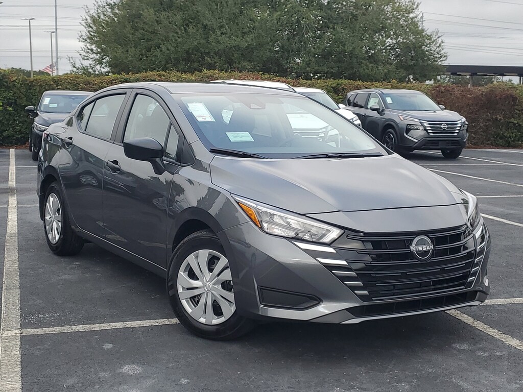 New 2025 Nissan Versa S [B93] SPLASH GUARDS, GUN METALLIC, CHARCOAL CLOTH SEAT TRIM, [L92] CARPETED FLOOR MATS, [M92] TRUNK PACKAGE -inc: Trunk Net Shopping Bag Hooks, Front Wheel Drive, Power Steering, ABS, Front Disc/Rear Drum Brakes, Brake Assist, Wheel Covers, Steel Wheels, Tires - Front All-Season, Tires - Rear All-Season, Wheel Covers, Temporary Spare Tire, Power Mirror(s), Rear Defrost, Intermittent Wipers, Variable Speed Intermittent Wipers, Daytime Running Lights, Automatic Headlights, LED Headlights, Automatic Highbeams, AM/FM Stereo, MP3 Capability, Bluetooth Connection, Auxiliary Audio Input, MP3 Capability, Steering Wheel Audio Controls, Bluetooth Connection, Bucket Seats, Rear Bench Seat, Adjustable Steering Wheel, Trip Computer, Power Windows, Remote Trunk Release, Cruise Control, A/C, Cloth Seats, Driver Vanity Mirror, Passenger Vanity Mirror, Smart Device Integration, Requires Subscription, Power Windows, Power Door Locks, Trip Computer, Immobilizer, Traction Control, Stability Control, Traction Control, Front Side Air Bag, Rear Parking Aid, Cross-Traffic Alert, Rear Collision Mitigation, Lane Departure Warning, Front Collision Mitigation, Tire Pressure Monitor, Driver Air Bag, Passenger Air Bag, Front Head Air Bag, Rear Head Air Bag, Passenger Air Bag Sensor, Front Side Air Bag, Rear Side Air Bag, Knee Air Bag, Child Safety Locks, Back-Up Camera