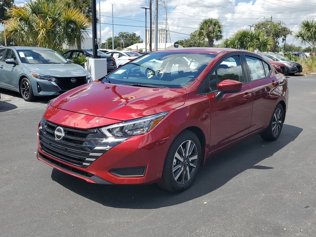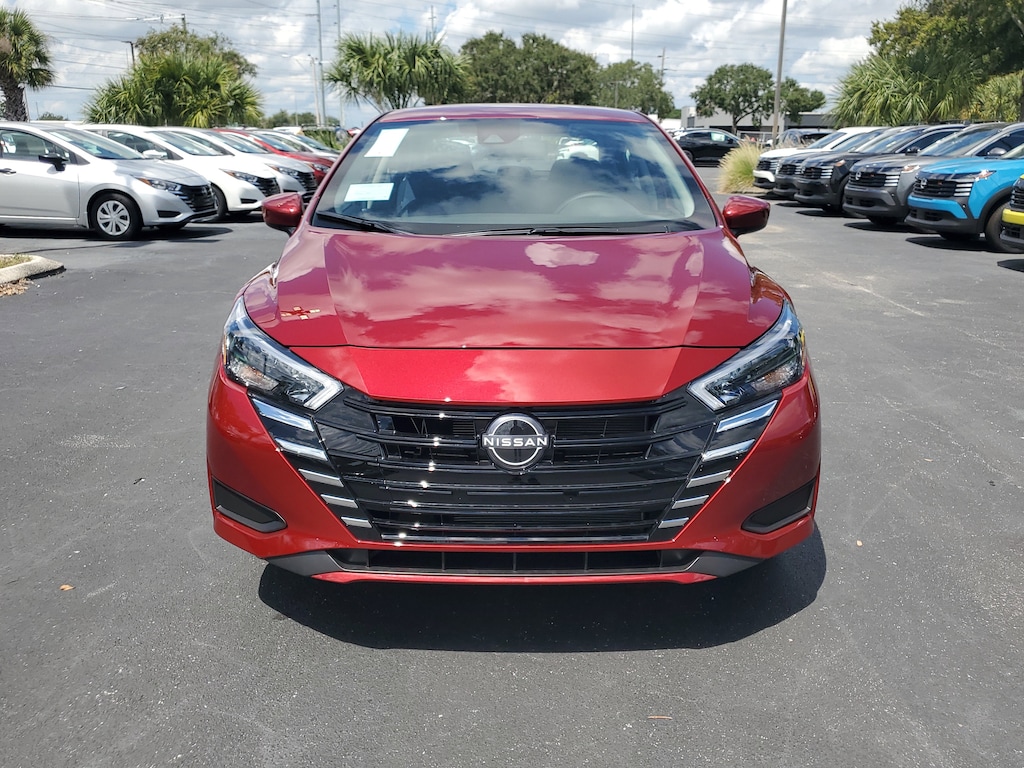 New 2025 Nissan Versa SV [B93] SPLASH GUARDS, GRAPHITE UPGRADED CLOTH SEAT TRIM, [L93] CARPETED FLOOR MATS & TRUNK MAT (5-PIECE SET), [E10] PREMIUM PAINT, SCARLET EMBER TINTCOAT, [M92] TRUNK PACKAGE -inc: Trunk Net Shopping Bag Hooks, Front Wheel Drive, Power Steering, ABS, Front Disc/Rear Drum Brakes, Brake Assist, Aluminum Wheels, Tires - Front Performance, Tires - Rear Performance, Temporary Spare Tire, Heated Mirrors, Power Mirror(s), Rear Defrost, Intermittent Wipers, Variable Speed Intermittent Wipers, Daytime Running Lights, Automatic Headlights, LED Headlights, Automatic Highbeams, AM/FM Stereo, MP3 Capability, Bluetooth Connection, Auxiliary Audio Input, Smart Device Integration, MP3 Capability, Steering Wheel Audio Controls, Bluetooth Connection, Bucket Seats, Pass-Through Rear Seat, Rear Bench Seat, Adjustable Steering Wheel, Trip Computer, Power Windows, Remote Trunk Release, Keyless Start, Keyless Entry, Power Door Locks, Cruise Control, A/C, Cloth Seats, Driver Vanity Mirror, Passenger Vanity Mirror, Smart Device Integration, Requires Subscription, Keyless Start, Smart Device Integration, Power Windows, Power Door Locks, Trip Computer, Immobilizer, Traction Control, Stability Control, Traction Control, Front Side Air Bag, Rear Parking Aid, Cross-Traffic Alert, Rear Collision Mitigation, Lane Departure Warning, Front Collision Mitigation, Blind Spot Monitor, Driver Monitoring, Tire Pressure Monitor, Driver Air Bag, Passenger Air Bag, Front Head Air Bag, Rear Head Air Bag, Passenger Air Bag Sensor, Front Side Air Bag, Rear Side Air Bag, Knee Air Bag, Child Safety Locks, Back-Up Camera