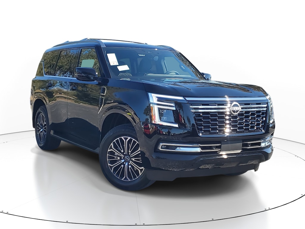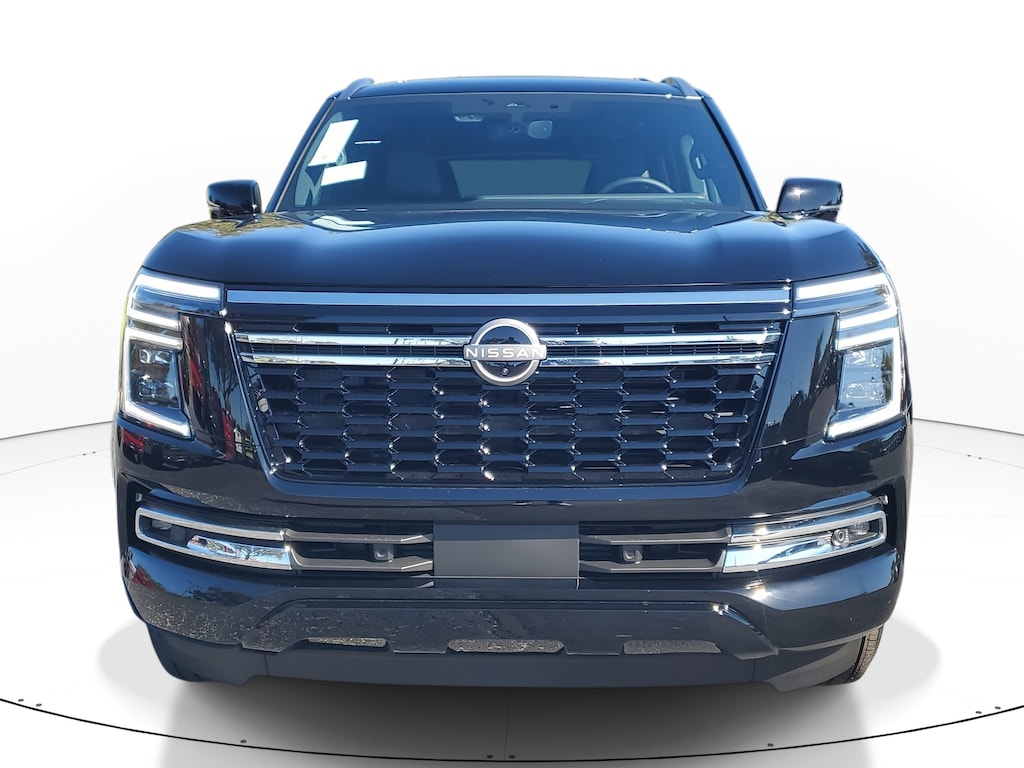 New 2026 Nissan Armada Platinum [B94] REAR BUMPER PROTECTOR, [B11] CENTER FRONT SPOILER, [B95] CROSS BARS, [L92] CARPETED FLOOR MATS W/CAPTAIN CHAIRS -inc: cargo area protector first aid kit and cargo blocks, [B92] SPLASH GUARDS, [H92] USB CHARGING CABLES, SUPER BLACK, CHARCOAL W/ESPRESSO QUILTED LEATHER SEAT TRIM, [N92] ILLUMINATED KICK PLATES, Turbocharged, Remote Engine Start, Rear Wheel Drive, Tow Hitch, Power Steering, ABS, 4-Wheel Disc Brakes, Brake Assist, Aluminum Wheels, Tires - Front All-Season, Tires - Rear All-Season, Temporary Spare Tire, Sun/Moonroof, Generic Sun/Moonroof, Panoramic Roof, Tow Hooks, Tow Hooks, Heated Mirrors, Power Mirror(s), Integrated Turn Signal Mirrors, Power Folding Mirrors, Rear Defrost, Privacy Glass, Intermittent Wipers, Variable Speed Intermittent Wipers, Rain Sensing Wipers, Rear Spoiler, Running Boards/Side Steps, Remote Trunk Release, Power Liftgate, Power Door Locks, Daytime Running Lights, Automatic Headlights, LED Headlights, Automatic Highbeams, Fog Lamps, AM/FM Stereo, Navigation System, Premium Sound System, Satellite Radio, MP3 Capability, Bluetooth Connection, Telematics, Auxiliary Audio Input, HD Radio, WiFi Hotspot, Smart Device Integration, Requires Subscription, MP3 Capability, Steering Wheel Audio Controls, Bluetooth Connection, Power Driver Seat, Power Passenger Seat, Bucket Seats, Heated Front Seat(s), Driver Adjustable Lumbar, Passenger Adjustable Lumbar, Seat Memory, Cooled Front Seat(s), Bucket Seats, Rear Bucket Seats, Heated Rear Seat(s), Adjustable Steering Wheel, Trip Computer, Power Windows, WiFi Hotspot, 3rd Row Seat, Leather Steering Wheel, Heated Steering Wheel, Keyless Entry, Power Door Locks, Keyless Start, Keyless Entry, Power Door Locks, Hands-Free Liftgate, Universal Garage Door Opener, Cruise Control, Adaptive Cruise Control, A/C, Rear A/C, Climate Control, Multi-Zone A/C, A/C, Woodgrain Interior Trim, Leather Seats, Driver Vanity Mirror, Passenger Vanity Mirror, Driver Illuminated Vanity Mirror, Passenger Illuminated Visor Mirror, Auto-Dimming Rearview Mirror, Smart Device Integration, Requires Subscription, Smart Device Integration, Mirror Memory, Seat Memory, Keyless Start, Navigation System, Power Windows, Power Door Locks, Trip Computer, Mirror Memory, Seat Memory, Security System, Immobilizer, Cruise Control Steering Assist, Traction Control, Stability Control, Traction Control, Front Side Air Bag, Telematics, Requires Subscription, Rear Parking Aid, Blind Spot Monitor, Cross-Traffic Alert, Rear Collision Mitigation, Lane Departure Warning, Lane Keeping Assist, Lane Departure Warning, Front Collision Mitigation, Driver Monitoring, Aerial View Display System, Tire Pressure Monitor, Driver Air Bag, Passenger Air Bag, Front Head Air Bag, Rear Head Air Bag, Passenger Air Bag Sensor, Knee Air Bag, Driver Restriction Features, Child Safety Locks, Back-Up Camera