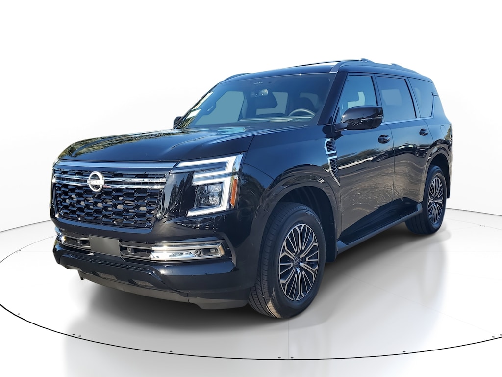 New 2026 Nissan Armada SL [B94] REAR BUMPER PROTECTOR, [B11] CENTER FRONT SPOILER, [B95] CROSS BARS, [L92] CARPETED FLOOR MATS W/CAPTAIN CHAIRS -inc: cargo area protector first aid kit and cargo blocks, [B92] SPLASH GUARDS, CHARCOAL W/ESPRESSO TAILORFIT SEAT TRIM, SUPER BLACK, [X01] CAPTAIN'S CHAIR SEAT PACKAGE -inc: Replaces 2nd-row split-bench seat Passenger capacity decreases from 8 to 7 2nd Row Outboard Captain's Chairs w/Armrests 2nd Row Center Console w/2 Cupholders EZ Flex 2nd-Row Seating System w/1-Touch Release, [P02] PROPILOT ASSIST 2.1 -inc: ProPILOT 2.1 w/information support lighting and ProPilot Assist 1.1 function 3D Around View Monitor Full 3D rotation Ambient Lighting w/Multicolor Illumination Head Up Display, Turbocharged, Remote Engine Start, Rear Wheel Drive, Tow Hitch, Power Steering, ABS, 4-Wheel Disc Brakes, Brake Assist, Aluminum Wheels, Tires - Front All-Season, Tires - Rear All-Season, Temporary Spare Tire, Tow Hooks, Tow Hooks, Heated Mirrors, Power Mirror(s), Integrated Turn Signal Mirrors, Power Folding Mirrors, Rear Defrost, Privacy Glass, Intermittent Wipers, Variable Speed Intermittent Wipers, Rain Sensing Wipers, Rear Spoiler, Running Boards/Side Steps, Remote Trunk Release, Power Liftgate, Power Door Locks, Daytime Running Lights, Automatic Headlights, LED Headlights, Automatic Highbeams, AM/FM Stereo, Navigation System, Premium Sound System, Satellite Radio, MP3 Capability, Bluetooth Connection, Telematics, Auxiliary Audio Input, HD Radio, WiFi Hotspot, Smart Device Integration, Requires Subscription, MP3 Capability, Steering Wheel Audio Controls, Bluetooth Connection, Power Driver Seat, Power Passenger Seat, Bucket Seats, Heated Front Seat(s), Driver Adjustable Lumbar, Passenger Adjustable Lumbar, Seat Memory, Pass-Through Rear Seat, Rear Bench Seat, Adjustable Steering Wheel, Trip Computer, Power Windows, WiFi Hotspot, 3rd Row Seat, Leather Steering Wheel, Heated Steering Wheel, Keyless Entry, Power Door Locks, Keyless Start, Keyless Entry, Power Door Locks, Universal Garage Door Opener, Cruise Control, Adaptive Cruise Control, A/C, Rear A/C, Climate Control, Multi-Zone A/C, A/C, Woodgrain Interior Trim, Premium Synthetic Seats, Driver Vanity Mirror, Passenger Vanity Mirror, Driver Illuminated Vanity Mirror, Passenger Illuminated Visor Mirror, Auto-Dimming Rearview Mirror, Smart Device Integration, Requires Subscription, Smart Device Integration, Mirror Memory, Seat Memory, Keyless Start, Navigation System, Power Windows, Power Door Locks, Trip Computer, Mirror Memory, Seat Memory, Security System, Immobilizer, Cruise Control Steering Assist, Traction Control, Stability Control, Traction Control, Front Side Air Bag, Telematics, Requires Subscription, Rear Parking Aid, Blind Spot Monitor, Cross-Traffic Alert, Rear Collision Mitigation, Lane Departure Warning, Lane Keeping Assist, Lane Departure Warning, Front Collision Mitigation, Driver Monitoring, Aerial View Display System, Tire Pressure Monitor, Driver Air Bag, Passenger Air Bag, Front Head Air Bag, Rear Head Air Bag, Passenger Air Bag Sensor, Knee Air Bag, Driver Restriction Features, Child Safety Locks, Back-Up Camera