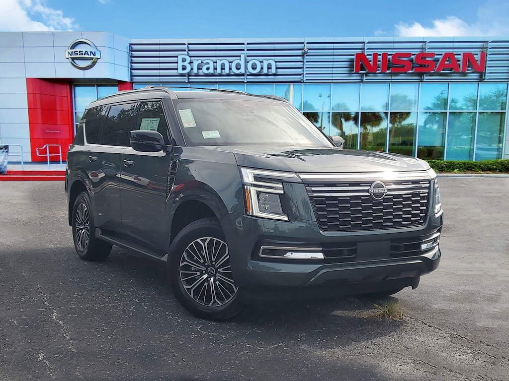 New 2026 Nissan Armada SL [B94] REAR BUMPER PROTECTOR, [B11] CENTER FRONT SPOILER, [B95] CROSS BARS, [L92] CARPETED FLOOR MATS W/CAPTAIN CHAIRS -inc: cargo area protector first aid kit and cargo blocks, [B92] SPLASH GUARDS, [H92] USB CHARGING CABLES, [M92] CONVENIENCE PACKAGE -inc: trash bin console net and umbrella holder, CHARCOAL W/ESPRESSO TAILORFIT SEAT TRIM, [X01] CAPTAIN'S CHAIR SEAT PACKAGE -inc: Replaces 2nd-row split-bench seat Passenger capacity decreases from 8 to 7 2nd Row Outboard Captain's Chairs w/Armrests 2nd Row Center Console w/2 Cupholders EZ Flex 2nd-Row Seating System w/1-Touch Release, ALPINE METALLIC, [E09] PREMIUM PAINT, Turbocharged, Remote Engine Start, Rear Wheel Drive, Tow Hitch, Power Steering, ABS, 4-Wheel Disc Brakes, Brake Assist, Aluminum Wheels, Tires - Front All-Season, Tires - Rear All-Season, Temporary Spare Tire, Tow Hooks, Tow Hooks, Heated Mirrors, Power Mirror(s), Integrated Turn Signal Mirrors, Power Folding Mirrors, Rear Defrost, Privacy Glass, Intermittent Wipers, Variable Speed Intermittent Wipers, Rain Sensing Wipers, Rear Spoiler, Running Boards/Side Steps, Remote Trunk Release, Power Liftgate, Power Door Locks, Daytime Running Lights, Automatic Headlights, LED Headlights, Automatic Highbeams, AM/FM Stereo, Navigation System, Premium Sound System, Satellite Radio, MP3 Capability, Bluetooth Connection, Telematics, Auxiliary Audio Input, HD Radio, WiFi Hotspot, Smart Device Integration, Requires Subscription, MP3 Capability, Steering Wheel Audio Controls, Bluetooth Connection, Power Driver Seat, Power Passenger Seat, Bucket Seats, Heated Front Seat(s), Driver Adjustable Lumbar, Passenger Adjustable Lumbar, Seat Memory, Pass-Through Rear Seat, Rear Bench Seat, Adjustable Steering Wheel, Trip Computer, Power Windows, WiFi Hotspot, 3rd Row Seat, Leather Steering Wheel, Heated Steering Wheel, Keyless Entry, Power Door Locks, Keyless Start, Keyless Entry, Power Door Locks, Universal Garage Door Opener, Cruise Control, Adaptive Cruise Control, A/C, Rear A/C, Climate Control, Multi-Zone A/C, A/C, Woodgrain Interior Trim, Premium Synthetic Seats, Driver Vanity Mirror, Passenger Vanity Mirror, Driver Illuminated Vanity Mirror, Passenger Illuminated Visor Mirror, Auto-Dimming Rearview Mirror, Smart Device Integration, Requires Subscription, Smart Device Integration, Mirror Memory, Seat Memory, Keyless Start, Navigation System, Power Windows, Power Door Locks, Trip Computer, Mirror Memory, Seat Memory, Security System, Immobilizer, Cruise Control Steering Assist, Traction Control, Stability Control, Traction Control, Front Side Air Bag, Telematics, Requires Subscription, Rear Parking Aid, Blind Spot Monitor, Cross-Traffic Alert, Rear Collision Mitigation, Lane Departure Warning, Lane Keeping Assist, Lane Departure Warning, Front Collision Mitigation, Driver Monitoring, Aerial View Display System, Tire Pressure Monitor, Driver Air Bag, Passenger Air Bag, Front Head Air Bag, Rear Head Air Bag, Passenger Air Bag Sensor, Knee Air Bag, Driver Restriction Features, Child Safety Locks, Back-Up Camera
