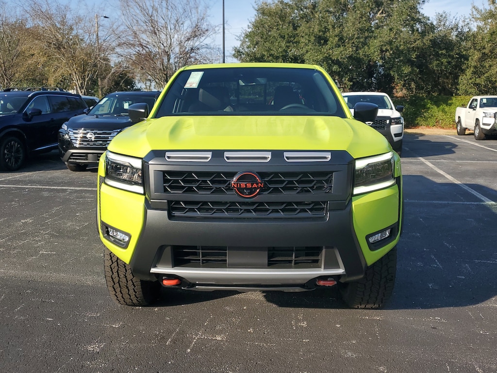 New 2026 Nissan Frontier PRO-4X [M92] ESSENTIALS KIT -inc: adventure medic kit off-road adventure kit seatback organizer and owner's manual portfolio, [F92] ELECTRONIC TAILGATE LOCK, [T11] TOW PACKAGE (T11) -inc: tow hitch and tow harness, [E10] PREMIUM PAINT, [P01] PRO PREMIUM PACKAGE -inc: Auto-Dimming Mirror Nissan Door-to-Door Navigation Traffic Sign Recognition (TSR) Fender Premium Audio System w/10 Speakers dual subwoofer Partial Under-Seat Storage Delete HomeLink UGDO Auto-Tilt & Slide Sunroof w/Manual Shade, [K04] PRO-4X CONVENIENCE PACKAGE -inc: Bed Under-Rail Lighting Remote Engine Starter 120V Power Outlet in Bed Heated Front Seats Intelligent Around View Monitor (I-AVM) Moving Object Detection (MOD) and enhanced off-road mode Utili-Track System 2 adjustable tie-down cleats Spray-In Bedliner Trailer Hitch w/Wiring Harness Heated Steering Wheel Wireless Charging for Personal Devices Heated Outside Mirrors 120V Power Outlet in Rear Center Console, [B08] MUD FLAPS, [L11] PRO-4X CARPETED FLOOR MATS, CHARCOAL W/LAVA RED ST LEATHER SEAT TRIM -inc: For front and rear seats (1st/2nd rows), [B93] OFF-ROAD STYLE STEP RAILS, CITRUS STRIKE, [B95] SOFT TONNEAU COVER (5.0' BED), Remote Engine Start, Four Wheel Drive, Locking/Limited Slip Differential, Power Steering, ABS, 4-Wheel Disc Brakes, Brake Assist, Locking/Limited Slip Differential, Brake Actuated Limited Slip Differential, Aluminum Wheels, Tires - Front All-Terrain, Tires - Rear All-Terrain, Conventional Spare Tire, Tow Hooks, Power Mirror(s), Sliding Rear Window, Privacy Glass, Intermittent Wipers, Variable Speed Intermittent Wipers, Power Door Locks, Automatic Highbeams, Fog Lamps, Daytime Running Lights, Automatic Headlights, LED Headlights, AM/FM Stereo, Satellite Radio, MP3 Capability, Steering Wheel Audio Controls, Bluetooth Connection, Auxiliary Audio Input, WiFi Hotspot, Smart Device Integration, Requires Subscription, MP3 Capability, Bluetooth Connection, Power Driver Seat, Power Passenger Seat, Bucket Seats, Heated Front Seat(s), Driver Adjustable Lumbar, Power Driver Seat, Pass-Through Rear Seat, Rear Bench Seat, Adjustable Steering Wheel, Trip Computer, Power Windows, WiFi Hotspot, Leather Steering Wheel, Heated Steering Wheel, Keyless Entry, Power Door Locks, Keyless Entry, Power Door Locks, Keyless Start, Cruise Control, Adaptive Cruise Control, Climate Control, Multi-Zone A/C, A/C, Driver Vanity Mirror, Passenger Vanity Mirror, Driver Illuminated Vanity Mirror, Passenger Illuminated Visor Mirror, Smart Device Integration, Power Windows, Sliding Rear Window, Power Door Locks, Trip Computer, Power Driver Seat, Immobilizer, Security System, Traction Control, Stability Control, Traction Control, Front Side Air Bag, Telematics, Requires Subscription, Rear Parking Aid, Blind Spot Monitor, Cross-Traffic Alert, Rear Collision Mitigation, Lane Departure Warning, Front Collision Mitigation, Driver Monitoring, Tire Pressure Monitor, Driver Air Bag, Passenger Air Bag, Front Head Air Bag, Rear Head Air Bag, Passenger Air Bag Sensor, Front Side Air Bag, Rear Side Air Bag, Knee Air Bag, Child Safety Locks, Back-Up Camera