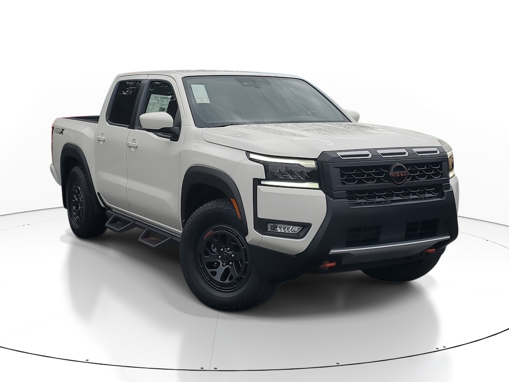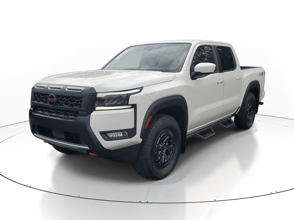 New 2026 Nissan Frontier PRO-X [T92] TOW PACKAGE -inc: tow hitch and tow harness, [B09] MUD FLAPS, [A93] DROP-IN BED LINER & BUMPER STEP, CHARCOAL W/LAVA RED ST PRO EMBROIDERED PREMIUM CLOTH SEAT TRIM, GLACIER WHITE, [B93] OFF-ROAD STYLE STEP RAILS, [L93] CARPETED FLOOR MATS -inc: owner's manual portfolio, Remote Engine Start, Rear Wheel Drive, Power Steering, ABS, 4-Wheel Disc Brakes, Brake Assist, Brake Actuated Limited Slip Differential, Aluminum Wheels, Tires - Front All-Terrain, Tires - Rear All-Terrain, Conventional Spare Tire, Tow Hooks, Power Mirror(s), Sliding Rear Window, Privacy Glass, Intermittent Wipers, Variable Speed Intermittent Wipers, Power Door Locks, Automatic Highbeams, Daytime Running Lights, Automatic Headlights, LED Headlights, Fog Lamps, AM/FM Stereo, Satellite Radio, MP3 Capability, Steering Wheel Audio Controls, Bluetooth Connection, Auxiliary Audio Input, Smart Device Integration, Requires Subscription, MP3 Capability, Bluetooth Connection, Power Driver Seat, Power Passenger Seat, Bucket Seats, Driver Adjustable Lumbar, Power Driver Seat, Pass-Through Rear Seat, Rear Bench Seat, Adjustable Steering Wheel, Trip Computer, Power Windows, WiFi Hotspot, Leather Steering Wheel, Heated Steering Wheel, Keyless Entry, Power Door Locks, Keyless Entry, Power Door Locks, Keyless Start, Cruise Control, Adaptive Cruise Control, Climate Control, Multi-Zone A/C, A/C, Cloth Seats, Driver Vanity Mirror, Passenger Vanity Mirror, Driver Illuminated Vanity Mirror, Passenger Illuminated Visor Mirror, Smart Device Integration, Power Windows, Sliding Rear Window, Power Door Locks, Trip Computer, Power Driver Seat, Immobilizer, Security System, Traction Control, Stability Control, Traction Control, Front Side Air Bag, Telematics, Requires Subscription, Rear Parking Aid, Blind Spot Monitor, Cross-Traffic Alert, Rear Collision Mitigation, Lane Departure Warning, Front Collision Mitigation, Driver Monitoring, Tire Pressure Monitor, Driver Air Bag, Passenger Air Bag, Front Head Air Bag, Rear Head Air Bag, Passenger Air Bag Sensor, Front Side Air Bag, Rear Side Air Bag, Knee Air Bag, Child Safety Locks, Back-Up Camera