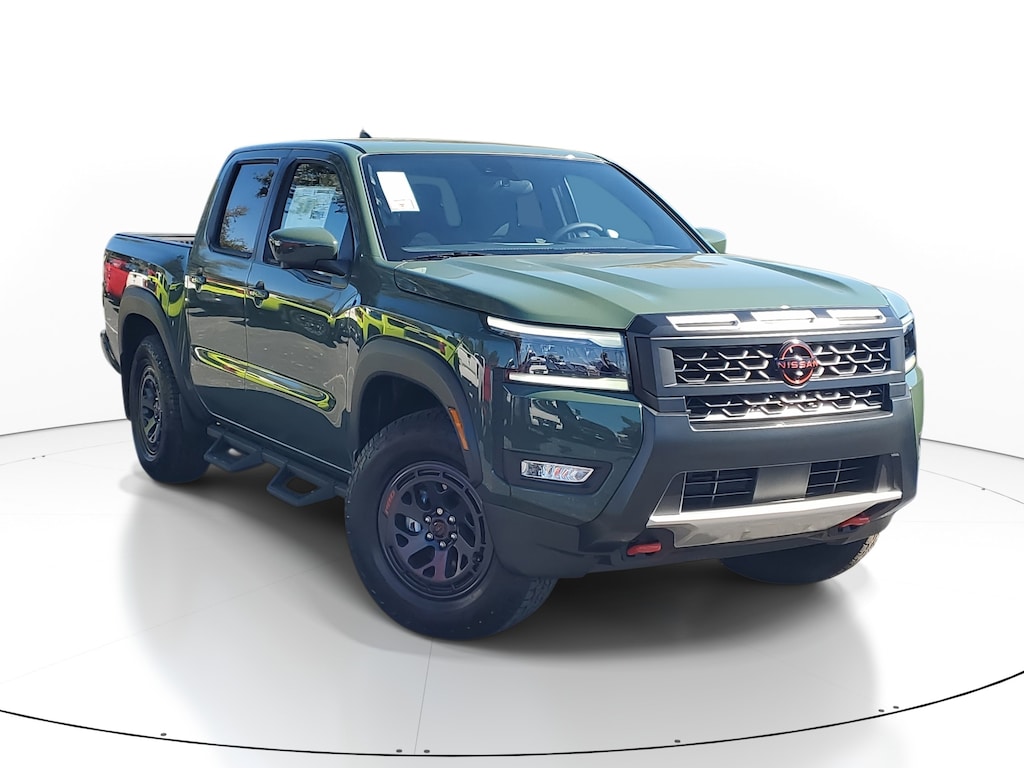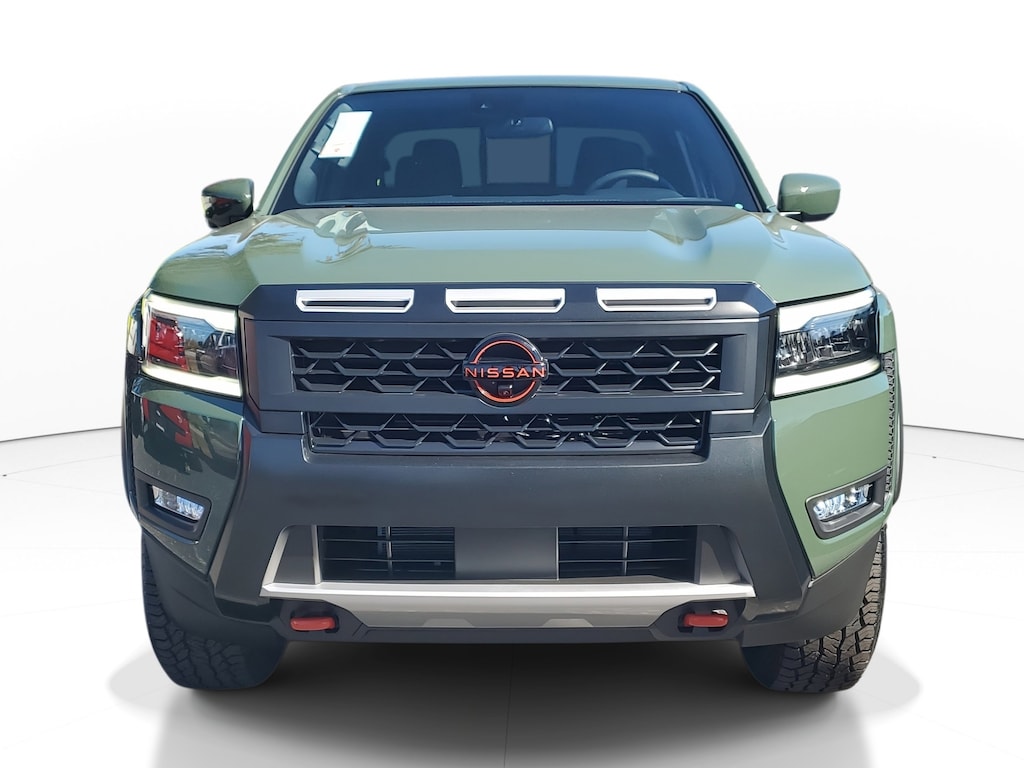 New 2026 Nissan Frontier PRO-X [K03] PRO-X CONVENIENCE PACKAGE -inc: Bed Under-Rail Lighting Remote Engine Starter 120V Power Outlet in Bed Heated Front Seats Intelligent Around View Monitor (I-AVM) Moving Object Detection (MOD) Utili-Track System 2 adjustable tie-down cleats Spray-In Bedliner Trailer Hitch w/Wiring Harness Heated Steering Wheel Wireless Charging for Personal Devices Heated Outside Mirrors 120V Power Outlet in Rear Center Console, [L93] CARPETED FLOOR MATS -inc: owner's manual portfolio, [E10] PREMIUM PAINT, [T11] TOW PACKAGE (T11) -inc: tow hitch and tow harness, TACTICAL GREEN METALLIC, [B93] OFF-ROAD STYLE STEP RAILS, [B09] MUD FLAPS, CHARCOAL W/LAVA RED ST PRO EMBROIDERED PREMIUM CLOTH SEAT TRIM, [F92] ELECTRONIC TAILGATE LOCK, Remote Engine Start, Rear Wheel Drive, Power Steering, ABS, 4-Wheel Disc Brakes, Brake Assist, Brake Actuated Limited Slip Differential, Aluminum Wheels, Tires - Front All-Terrain, Tires - Rear All-Terrain, Conventional Spare Tire, Tow Hooks, Power Mirror(s), Sliding Rear Window, Privacy Glass, Intermittent Wipers, Variable Speed Intermittent Wipers, Power Door Locks, Automatic Highbeams, Daytime Running Lights, Automatic Headlights, LED Headlights, Fog Lamps, AM/FM Stereo, Satellite Radio, MP3 Capability, Steering Wheel Audio Controls, Bluetooth Connection, Auxiliary Audio Input, Smart Device Integration, Requires Subscription, MP3 Capability, Bluetooth Connection, Power Driver Seat, Power Passenger Seat, Bucket Seats, Driver Adjustable Lumbar, Power Driver Seat, Pass-Through Rear Seat, Rear Bench Seat, Adjustable Steering Wheel, Trip Computer, Power Windows, WiFi Hotspot, Leather Steering Wheel, Heated Steering Wheel, Keyless Entry, Power Door Locks, Keyless Entry, Power Door Locks, Keyless Start, Cruise Control, Adaptive Cruise Control, Climate Control, Multi-Zone A/C, A/C, Cloth Seats, Driver Vanity Mirror, Passenger Vanity Mirror, Driver Illuminated Vanity Mirror, Passenger Illuminated Visor Mirror, Smart Device Integration, Power Windows, Sliding Rear Window, Power Door Locks, Trip Computer, Power Driver Seat, Immobilizer, Security System, Traction Control, Stability Control, Traction Control, Front Side Air Bag, Telematics, Requires Subscription, Rear Parking Aid, Blind Spot Monitor, Cross-Traffic Alert, Rear Collision Mitigation, Lane Departure Warning, Front Collision Mitigation, Driver Monitoring, Tire Pressure Monitor, Driver Air Bag, Passenger Air Bag, Front Head Air Bag, Rear Head Air Bag, Passenger Air Bag Sensor, Front Side Air Bag, Rear Side Air Bag, Knee Air Bag, Child Safety Locks, Back-Up Camera