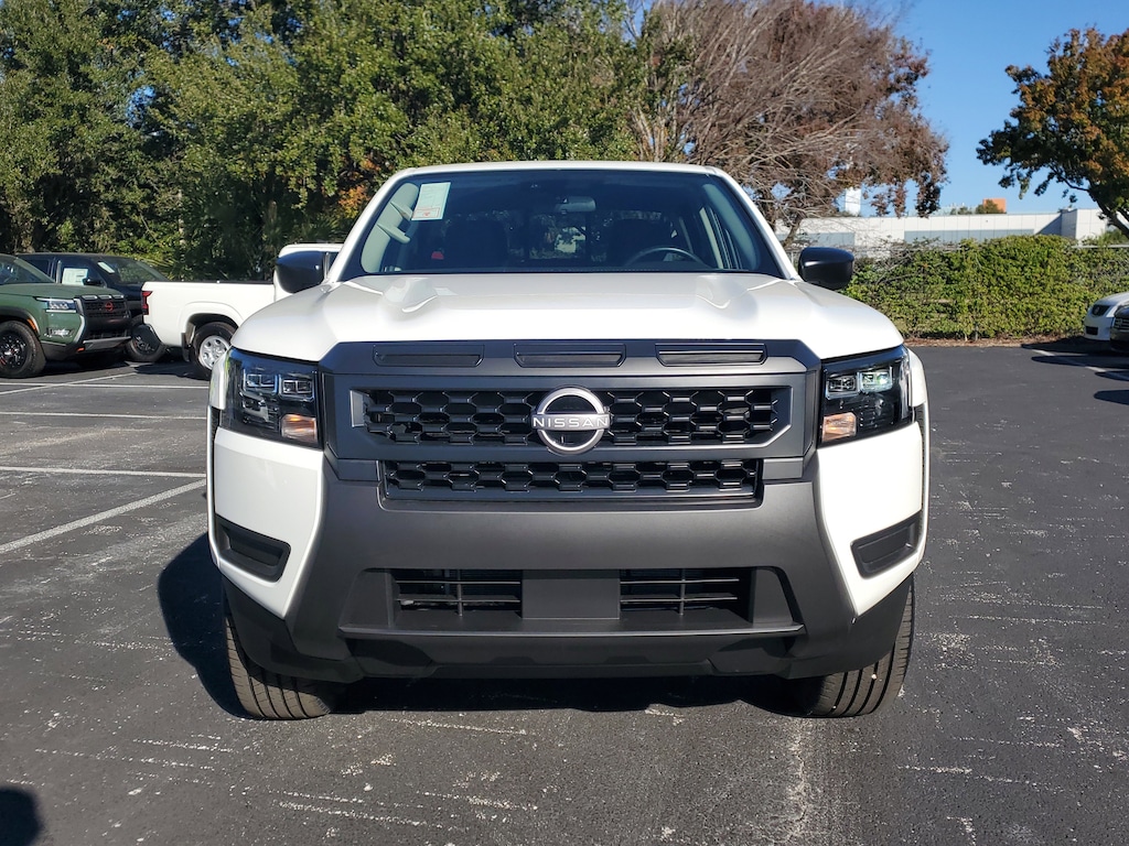 New 2026 Nissan Frontier S [L93] CARPETED FLOOR MATS -inc: owner's manual portfolio, [B10] SPLASH GUARDS, CHARCOAL CLOTH SEAT TRIM, [K01] S UTILITY PACKAGE -inc: 120V Power Outlet in Bed Spray-In Bedliner 120V Power Outlet in Rear Center Console, GLACIER WHITE, Rear Wheel Drive, Power Steering, ABS, 4-Wheel Disc Brakes, Brake Assist, Brake Actuated Limited Slip Differential, Aluminum Wheels, Tires - Front All-Season, Tires - Rear All-Season, Conventional Spare Tire, Sliding Rear Window, Privacy Glass, Intermittent Wipers, Variable Speed Intermittent Wipers, Power Door Locks, Automatic Highbeams, Automatic Headlights, LED Headlights, AM/FM Stereo, MP3 Capability, Steering Wheel Audio Controls, Bluetooth Connection, Auxiliary Audio Input, Smart Device Integration, MP3 Capability, Bluetooth Connection, Bucket Seats, Pass-Through Rear Seat, Rear Bench Seat, Adjustable Steering Wheel, Trip Computer, Power Windows, WiFi Hotspot, Keyless Start, Keyless Entry, Power Door Locks, Cruise Control, Adaptive Cruise Control, A/C, Cloth Seats, Smart Device Integration, Power Windows, Sliding Rear Window, Power Door Locks, Trip Computer, Immobilizer, Traction Control, Stability Control, Traction Control, Front Side Air Bag, Telematics, Requires Subscription, Rear Parking Aid, Blind Spot Monitor, Cross-Traffic Alert, Rear Collision Mitigation, Lane Departure Warning, Front Collision Mitigation, Driver Monitoring, Tire Pressure Monitor, Driver Air Bag, Passenger Air Bag, Front Head Air Bag, Rear Head Air Bag, Passenger Air Bag Sensor, Front Side Air Bag, Rear Side Air Bag, Knee Air Bag, Child Safety Locks, Back-Up Camera