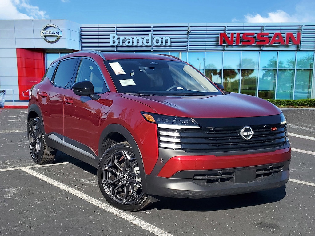 New 2026 Nissan Kicks SR [X01] COLD WEATHER PACKAGE -inc: Heated Front Seats Rear Floor Heater Ducts Heated Mirrors, SPORT SPORT LEATHERETTE W/CLOTH INSERT SEAT TRIM, SCARLET EMBER TINTCOAT, [S94] PANORAMIC HEADLINER ILLUMINATION, [P03] SR PREMIUM PACKAGE -inc: Bose 10 -Speaker Audio driver and passenger headrest speaker Heated Steering Wheel Driver Seat-Mounted Supplemental Air Bag Front-center Panoramic Moonroof, [L94] CARPETED FLOOR MATS & UNDERFLOOR PROTECTOR, [W10] WHEELS: 19" DARK GRAY ALLOY -inc: Type B Tires: 225/45R19 AS, [B92] SPLASH GUARDS, [E09] PREMIUM PAINT, Remote Engine Start, Front Wheel Drive, Power Steering, ABS, 4-Wheel Disc Brakes, Brake Assist, Brake Actuated Limited Slip Differential, Aluminum Wheels, Tires - Front All-Season, Tires - Rear All-Season, Power Mirror(s), Integrated Turn Signal Mirrors, Rear Defrost, Privacy Glass, Intermittent Wipers, Variable Speed Intermittent Wipers, Rear Spoiler, Power Door Locks, Automatic Highbeams, Daytime Running Lights, Automatic Headlights, LED Headlights, AM/FM Stereo, Satellite Radio, MP3 Capability, Steering Wheel Audio Controls, Bluetooth Connection, Auxiliary Audio Input, WiFi Hotspot, Smart Device Integration, Requires Subscription, MP3 Capability, Bluetooth Connection, Bucket Seats, Pass-Through Rear Seat, Rear Bench Seat, Adjustable Steering Wheel, Trip Computer, Power Windows, WiFi Hotspot, Leather Steering Wheel, Keyless Entry, Power Door Locks, Keyless Start, Keyless Entry, Power Door Locks, Remote Trunk Release, Universal Garage Door Opener, Cruise Control, Adaptive Cruise Control, Climate Control, A/C, Cloth Seats, Premium Synthetic Seats, Driver Vanity Mirror, Passenger Vanity Mirror, Driver Illuminated Vanity Mirror, Passenger Illuminated Visor Mirror, Smart Device Integration, Requires Subscription, Smart Device Integration, Power Windows, Power Door Locks, Trip Computer, Security System, Immobilizer, Cruise Control Steering Assist, Traction Control, Stability Control, Traction Control, Front Side Air Bag, Cross-Traffic Alert, Rear Collision Mitigation, Front Collision Mitigation, Driver Monitoring, Telematics, Requires Subscription, Rear Parking Aid, Blind Spot Monitor, Lane Departure Warning, Lane Keeping Assist, Lane Departure Warning, Aerial View Display System, Tire Pressure Monitor, Driver Air Bag, Passenger Air Bag, Front Head Air Bag, Rear Head Air Bag, Passenger Air Bag Sensor, Front Side Air Bag, Rear Side Air Bag, Knee Air Bag, Child Safety Locks, Back-Up Camera