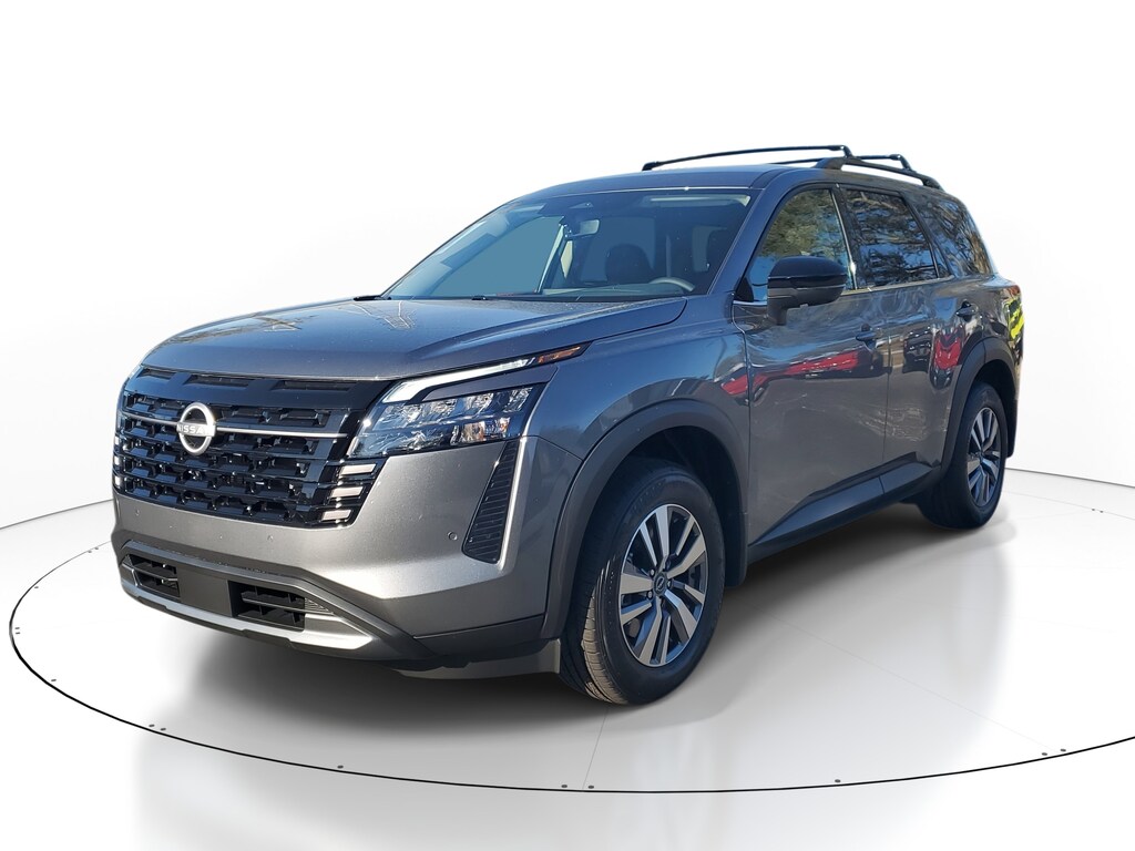 New 2026 Nissan Pathfinder SL [L92] BENCH SEAT CARPETED FLOOR MATS -inc: carpeted cargo area protector, GUN METALLIC, [B92] CROSS BARS, CHARCOAL TAILORFIT APPOINTED SEATING SURFACES, [B10] 4-PIECE BLACK SPLASH GUARDS -inc: In plant installation, Smart Device Integration, Requires Subscription, Front Wheel Drive, Power Steering, ABS, 4-Wheel Disc Brakes, Brake Assist, Brake Actuated Limited Slip Differential, Aluminum Wheels, Tires - Front All-Season, Tires - Rear All-Season, Temporary Spare Tire, Heated Mirrors, Power Mirror(s), Integrated Turn Signal Mirrors, Rear Defrost, Privacy Glass, Intermittent Wipers, Variable Speed Intermittent Wipers, Rear Spoiler, Remote Trunk Release, Power Liftgate, Power Door Locks, Daytime Running Lights, Automatic Headlights, LED Headlights, Automatic Highbeams, AM/FM Stereo, Satellite Radio, MP3 Capability, Bluetooth Connection, Auxiliary Audio Input, Smart Device Integration, Requires Subscription, MP3 Capability, Steering Wheel Audio Controls, Bluetooth Connection, Power Driver Seat, Bucket Seats, Heated Front Seat(s), Driver Adjustable Lumbar, Pass-Through Rear Seat, Rear Bench Seat, Adjustable Steering Wheel, Trip Computer, Power Windows, WiFi Hotspot, 3rd Row Seat, Heated Steering Wheel, Keyless Entry, Power Door Locks, Keyless Start, Keyless Entry, Power Door Locks, Universal Garage Door Opener, Cruise Control, Adaptive Cruise Control, Climate Control, Multi-Zone A/C, A/C, A/C, Rear A/C, Premium Synthetic Seats, Driver Vanity Mirror, Passenger Vanity Mirror, Driver Illuminated Vanity Mirror, Passenger Illuminated Visor Mirror, Auto-Dimming Rearview Mirror, Smart Device Integration, Remote Engine Start, Keyless Start, Power Windows, Power Door Locks, Trip Computer, Security System, Immobilizer, Cruise Control Steering Assist, Traction Control, Stability Control, Traction Control, Front Side Air Bag, Telematics, Requires Subscription, Cross-Traffic Alert, Rear Collision Mitigation, Cross-Traffic Alert, Front Collision Mitigation, Driver Monitoring, Rear Parking Aid, Blind Spot Monitor, Lane Departure Warning, Lane Keeping Assist, Lane Departure Warning, Aerial View Display System, Tire Pressure Monitor, Driver Air Bag, Passenger Air Bag, Front Head Air Bag, Rear Head Air Bag, Passenger Air Bag Sensor, Front Side Air Bag, Rear Side Air Bag, Knee Air Bag, Driver Restriction Features, Child Safety Locks, Back-Up Camera