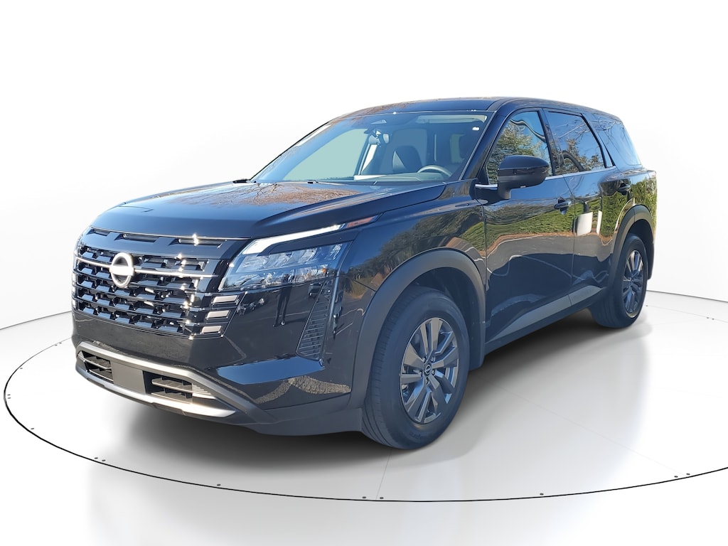 New 2026 Nissan Pathfinder S SUPER BLACK, CHARCOAL CLOTH SEATING SURFACES, [L92] BENCH SEAT CARPETED FLOOR MATS -inc: carpeted cargo area protector, [B10] 4-PIECE BLACK SPLASH GUARDS -inc: In plant installation, Front Wheel Drive, Power Steering, ABS, 4-Wheel Disc Brakes, Brake Assist, Brake Actuated Limited Slip Differential, Aluminum Wheels, Tires - Front All-Season, Tires - Rear All-Season, Temporary Spare Tire, Power Mirror(s), Rear Defrost, Privacy Glass, Intermittent Wipers, Variable Speed Intermittent Wipers, Rear Spoiler, Power Door Locks, Daytime Running Lights, Automatic Headlights, LED Headlights, Automatic Highbeams, AM/FM Stereo, Satellite Radio, MP3 Capability, Bluetooth Connection, Auxiliary Audio Input, Smart Device Integration, Requires Subscription, MP3 Capability, Steering Wheel Audio Controls, Bluetooth Connection, Bucket Seats, Pass-Through Rear Seat, Rear Bench Seat, Adjustable Steering Wheel, Trip Computer, Power Windows, WiFi Hotspot, 3rd Row Seat, Keyless Entry, Power Door Locks, Keyless Start, Keyless Entry, Power Door Locks, Universal Garage Door Opener, Cruise Control, Climate Control, Multi-Zone A/C, A/C, A/C, Rear A/C, Cloth Seats, Driver Vanity Mirror, Passenger Vanity Mirror, Keyless Start, Smart Device Integration, Requires Subscription, Smart Device Integration, Power Windows, Power Door Locks, Trip Computer, Security System, Immobilizer, Traction Control, Stability Control, Traction Control, Front Side Air Bag, Telematics, Requires Subscription, Rear Parking Aid, Blind Spot Monitor, Cross-Traffic Alert, Rear Collision Mitigation, Cross-Traffic Alert, Lane Departure Warning, Front Collision Mitigation, Driver Monitoring, Tire Pressure Monitor, Driver Air Bag, Passenger Air Bag, Front Head Air Bag, Rear Head Air Bag, Passenger Air Bag Sensor, Front Side Air Bag, Rear Side Air Bag, Knee Air Bag, Driver Restriction Features, Child Safety Locks, Back-Up Camera