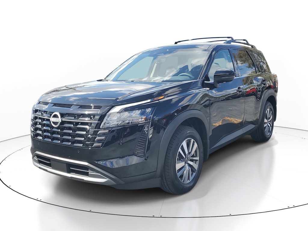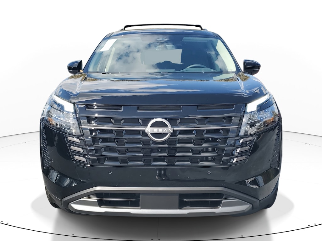 New 2026 Nissan Pathfinder SL [L92] BENCH SEAT CARPETED FLOOR MATS -inc: carpeted cargo area protector, SUPER BLACK, [B92] CROSS BARS, CHARCOAL TAILORFIT APPOINTED SEATING SURFACES, [B10] 4-PIECE BLACK SPLASH GUARDS -inc: In plant installation, Smart Device Integration, Requires Subscription, Front Wheel Drive, Power Steering, ABS, 4-Wheel Disc Brakes, Brake Assist, Brake Actuated Limited Slip Differential, Aluminum Wheels, Tires - Front All-Season, Tires - Rear All-Season, Temporary Spare Tire, Heated Mirrors, Power Mirror(s), Integrated Turn Signal Mirrors, Rear Defrost, Privacy Glass, Intermittent Wipers, Variable Speed Intermittent Wipers, Rear Spoiler, Remote Trunk Release, Power Liftgate, Power Door Locks, Daytime Running Lights, Automatic Headlights, LED Headlights, Automatic Highbeams, AM/FM Stereo, Satellite Radio, MP3 Capability, Bluetooth Connection, Auxiliary Audio Input, Smart Device Integration, Requires Subscription, MP3 Capability, Steering Wheel Audio Controls, Bluetooth Connection, Power Driver Seat, Bucket Seats, Heated Front Seat(s), Driver Adjustable Lumbar, Pass-Through Rear Seat, Rear Bench Seat, Adjustable Steering Wheel, Trip Computer, Power Windows, WiFi Hotspot, 3rd Row Seat, Heated Steering Wheel, Keyless Entry, Power Door Locks, Keyless Start, Keyless Entry, Power Door Locks, Universal Garage Door Opener, Cruise Control, Adaptive Cruise Control, Climate Control, Multi-Zone A/C, A/C, A/C, Rear A/C, Premium Synthetic Seats, Driver Vanity Mirror, Passenger Vanity Mirror, Driver Illuminated Vanity Mirror, Passenger Illuminated Visor Mirror, Auto-Dimming Rearview Mirror, Smart Device Integration, Remote Engine Start, Keyless Start, Power Windows, Power Door Locks, Trip Computer, Security System, Immobilizer, Cruise Control Steering Assist, Traction Control, Stability Control, Traction Control, Front Side Air Bag, Telematics, Requires Subscription, Cross-Traffic Alert, Rear Collision Mitigation, Cross-Traffic Alert, Front Collision Mitigation, Driver Monitoring, Rear Parking Aid, Blind Spot Monitor, Lane Departure Warning, Lane Keeping Assist, Lane Departure Warning, Aerial View Display System, Tire Pressure Monitor, Driver Air Bag, Passenger Air Bag, Front Head Air Bag, Rear Head Air Bag, Passenger Air Bag Sensor, Front Side Air Bag, Rear Side Air Bag, Knee Air Bag, Driver Restriction Features, Child Safety Locks, Back-Up Camera