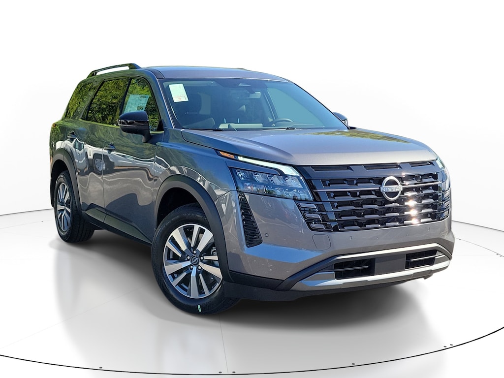 New 2026 Nissan Pathfinder SL [L92] BENCH SEAT CARPETED FLOOR MATS -inc: carpeted cargo area protector, GUN METALLIC, [M92] CARGO PACKAGE -inc: dividers and console net Cargo Area Protector Cargo Net First Aid, CHARCOAL TAILORFIT APPOINTED SEATING SURFACES, [B10] 4-PIECE BLACK SPLASH GUARDS -inc: In plant installation, [H92] NISSAN USB CHARGING CABLE SET, Smart Device Integration, Requires Subscription, Front Wheel Drive, Power Steering, ABS, 4-Wheel Disc Brakes, Brake Assist, Brake Actuated Limited Slip Differential, Aluminum Wheels, Tires - Front All-Season, Tires - Rear All-Season, Temporary Spare Tire, Heated Mirrors, Power Mirror(s), Integrated Turn Signal Mirrors, Rear Defrost, Privacy Glass, Intermittent Wipers, Variable Speed Intermittent Wipers, Rear Spoiler, Remote Trunk Release, Power Liftgate, Power Door Locks, Daytime Running Lights, Automatic Headlights, LED Headlights, Automatic Highbeams, AM/FM Stereo, Satellite Radio, MP3 Capability, Bluetooth Connection, Auxiliary Audio Input, WiFi Hotspot, Smart Device Integration, Requires Subscription, MP3 Capability, Steering Wheel Audio Controls, Bluetooth Connection, Power Driver Seat, Bucket Seats, Heated Front Seat(s), Driver Adjustable Lumbar, Pass-Through Rear Seat, Rear Bench Seat, Adjustable Steering Wheel, Trip Computer, Power Windows, WiFi Hotspot, 3rd Row Seat, Heated Steering Wheel, Keyless Entry, Power Door Locks, Keyless Start, Keyless Entry, Power Door Locks, Universal Garage Door Opener, Cruise Control, Adaptive Cruise Control, Climate Control, Multi-Zone A/C, A/C, A/C, Rear A/C, Premium Synthetic Seats, Driver Vanity Mirror, Passenger Vanity Mirror, Driver Illuminated Vanity Mirror, Passenger Illuminated Visor Mirror, Auto-Dimming Rearview Mirror, Smart Device Integration, Remote Engine Start, Keyless Start, Power Windows, Power Door Locks, Trip Computer, Security System, Immobilizer, Cruise Control Steering Assist, Traction Control, Stability Control, Traction Control, Front Side Air Bag, Telematics, Requires Subscription, Cross-Traffic Alert, Rear Collision Mitigation, Cross-Traffic Alert, Front Collision Mitigation, Driver Monitoring, Rear Parking Aid, Blind Spot Monitor, Lane Departure Warning, Lane Keeping Assist, Lane Departure Warning, Aerial View Display System, Tire Pressure Monitor, Driver Air Bag, Passenger Air Bag, Front Head Air Bag, Rear Head Air Bag, Passenger Air Bag Sensor, Front Side Air Bag, Rear Side Air Bag, Knee Air Bag, Driver Restriction Features, Child Safety Locks, Back-Up Camera