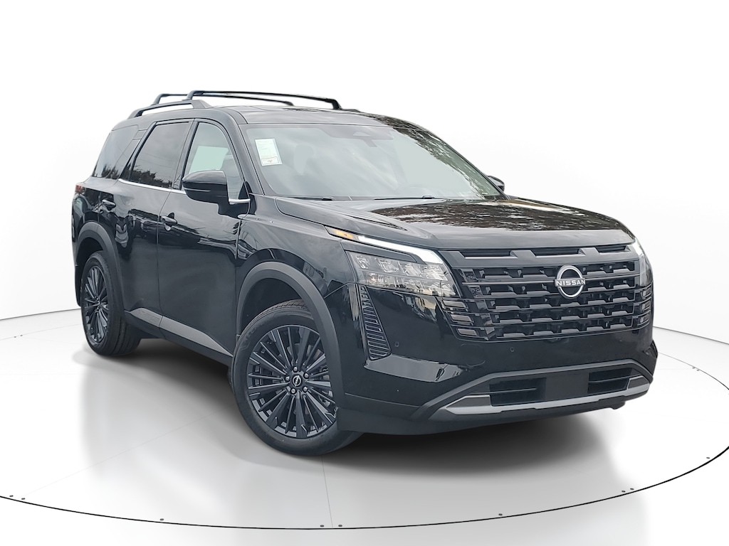 New 2026 Nissan Pathfinder SL SUPER BLACK, [B92] CROSS BARS, [P03] SL PREMIUM PACKAGE -inc: Bose Premium Audio System 13 speakers w/dual driver subwoofer Wheels: 20" Machined Alloy w/Dark Met Gray Finish Type-B Panoramic Moonroof Heated Rear Seats Tires: 255/50R20 All-Season Tow Hitch Receiver & Harness 6 000 lbs max tow capacity 2nd-Row Captain Chairs Removable Center Console 2nd Row Manual Sunshades, [L93] CAPTAIN'S CHAIRS CARPETED FLOOR MATS -inc: carpeted cargo area protector, CHARCOAL TAILORFIT APPOINTED SEATING SURFACES, [B10] 4-PIECE BLACK SPLASH GUARDS -inc: In plant installation, Smart Device Integration, Requires Subscription, Front Wheel Drive, Power Steering, ABS, 4-Wheel Disc Brakes, Brake Assist, Brake Actuated Limited Slip Differential, Aluminum Wheels, Tires - Front All-Season, Tires - Rear All-Season, Temporary Spare Tire, Heated Mirrors, Power Mirror(s), Integrated Turn Signal Mirrors, Rear Defrost, Privacy Glass, Intermittent Wipers, Variable Speed Intermittent Wipers, Rear Spoiler, Remote Trunk Release, Power Liftgate, Power Door Locks, Daytime Running Lights, Automatic Headlights, LED Headlights, Automatic Highbeams, AM/FM Stereo, Satellite Radio, MP3 Capability, Bluetooth Connection, Auxiliary Audio Input, Smart Device Integration, Requires Subscription, MP3 Capability, Steering Wheel Audio Controls, Bluetooth Connection, Power Driver Seat, Bucket Seats, Heated Front Seat(s), Driver Adjustable Lumbar, Pass-Through Rear Seat, Adjustable Steering Wheel, Trip Computer, Power Windows, WiFi Hotspot, 3rd Row Seat, Heated Steering Wheel, Keyless Entry, Power Door Locks, Keyless Start, Keyless Entry, Power Door Locks, Universal Garage Door Opener, Cruise Control, Adaptive Cruise Control, Climate Control, Multi-Zone A/C, A/C, A/C, Rear A/C, Premium Synthetic Seats, Driver Vanity Mirror, Passenger Vanity Mirror, Driver Illuminated Vanity Mirror, Passenger Illuminated Visor Mirror, Auto-Dimming Rearview Mirror, Smart Device Integration, Remote Engine Start, Keyless Start, Power Windows, Power Door Locks, Trip Computer, Security System, Immobilizer, Cruise Control Steering Assist, Traction Control, Stability Control, Traction Control, Front Side Air Bag, Telematics, Requires Subscription, Cross-Traffic Alert, Rear Collision Mitigation, Cross-Traffic Alert, Front Collision Mitigation, Driver Monitoring, Rear Parking Aid, Blind Spot Monitor, Lane Departure Warning, Lane Keeping Assist, Lane Departure Warning, Aerial View Display System, Tire Pressure Monitor, Driver Air Bag, Passenger Air Bag, Front Head Air Bag, Rear Head Air Bag, Passenger Air Bag Sensor, Front Side Air Bag, Rear Side Air Bag, Knee Air Bag, Driver Restriction Features, Child Safety Locks, Back-Up Camera