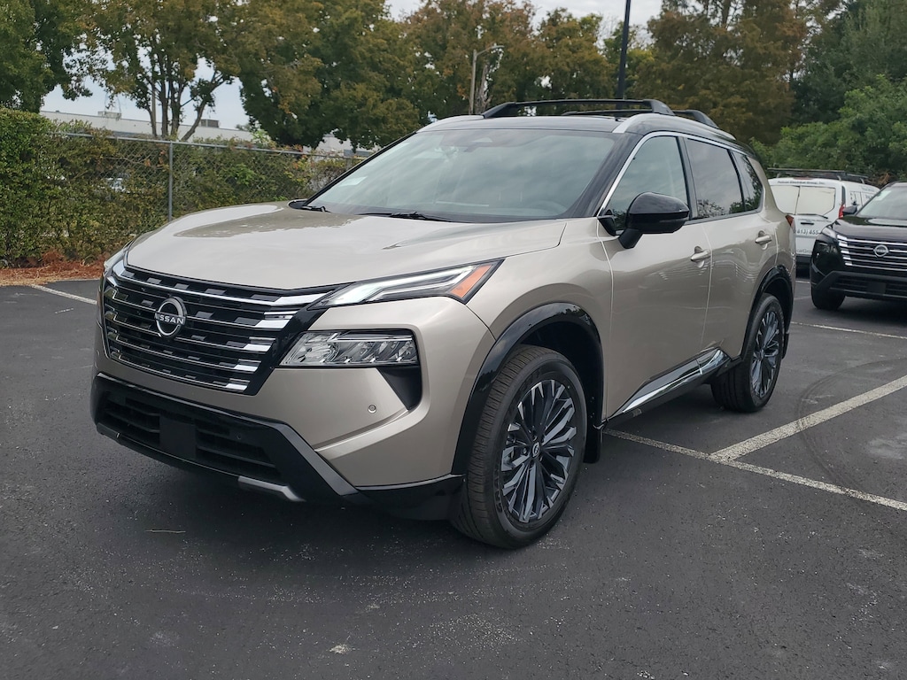 New 2026 Nissan Rogue Platinum CHARCOAL QUILTED SEMI-ANILINE LEATHER-APPOINTED SEAT TRIM -inc: Perforated, [B94] BLACK SPLASH GUARDS (SET OF 4), [L93] FLOOR MATS W/2-PIECE CARGO AREA PROTECTOR -inc: seatback protector First Aid Kit, [B96] ROOF RAIL CROSS BARS, [P04] PLATINUM PREMIUM PACKAGE -inc: Heated Rear Seats Motion-Activated Power Liftgate Tri-Zone Automatic Temperature Control Head-Up Display, [M92] RETRACTABLE CARGO COVER, CHAMPAGNE SILVER METALLIC/SUPER BLACK, [B95] CHROME REAR BUMPER PROTECTOR, [E10] TWO-TONE PAINT, [H92] USB CHARGING CABLE SET, Turbocharged, Remote Engine Start, All Wheel Drive, Power Steering, ABS, 4-Wheel Disc Brakes, Brake Assist, Brake Actuated Limited Slip Differential, Aluminum Wheels, Tires - Front Performance, Tires - Rear Performance, Temporary Spare Tire, Sun/Moonroof, Generic Sun/Moonroof, Panoramic Roof, Heated Mirrors, Power Mirror(s), Integrated Turn Signal Mirrors, Rear Defrost, Privacy Glass, Intermittent Wipers, Variable Speed Intermittent Wipers, Rear Spoiler, Remote Trunk Release, Power Liftgate, Power Door Locks, Daytime Running Lights, Automatic Headlights, LED Headlights, Automatic Highbeams, AM/FM Stereo, Navigation System, Satellite Radio, MP3 Capability, Bluetooth Connection, Telematics, Auxiliary Audio Input, WiFi Hotspot, Smart Device Integration, Requires Subscription, MP3 Capability, Steering Wheel Audio Controls, Premium Sound System, Bluetooth Connection, Power Driver Seat, Power Passenger Seat, Bucket Seats, Heated Front Seat(s), Driver Adjustable Lumbar, Seat Memory, Pass-Through Rear Seat, Rear Bench Seat, Adjustable Steering Wheel, Trip Computer, Power Windows, WiFi Hotspot, Heated Steering Wheel, Keyless Entry, Power Door Locks, Keyless Entry, Power Door Locks, Keyless Start, Remote Trunk Release, Universal Garage Door Opener, Cruise Control, Adaptive Cruise Control, Climate Control, Multi-Zone A/C, A/C, Woodgrain Interior Trim, Leather Seats, Driver Vanity Mirror, Passenger Vanity Mirror, Driver Illuminated Vanity Mirror, Passenger Illuminated Visor Mirror, Auto-Dimming Rearview Mirror, Keyless Start, Smart Device Integration, Navigation System, Mirror Memory, Seat Memory, Power Windows, Power Door Locks, Trip Computer, Heads-Up Display, Mirror Memory, Seat Memory, Immobilizer, Security System, Cruise Control Steering Assist, Traction Control, Stability Control, Traction Control, Front Side Air Bag, Cross-Traffic Alert, Rear Collision Mitigation, Front Collision Mitigation, Driver Monitoring, Blind Spot Monitor, Lane Departure Warning, Lane Keeping Assist, Lane Departure Warning, Rear Parking Aid, Back-Up Camera, Aerial View Display System, Telematics, Requires Subscription, Tire Pressure Monitor, Driver Air Bag, Passenger Air Bag, Front Head Air Bag, Rear Head Air Bag, Passenger Air Bag Sensor, Front Side Air Bag, Rear Side Air Bag, Knee Air Bag, Child Safety Locks, Back-Up Camera