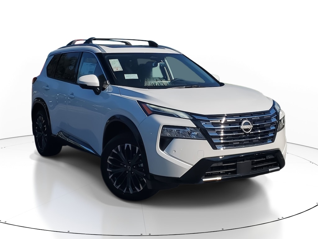 New 2026 Nissan Rogue Platinum CHARCOAL QUILTED SEMI-ANILINE LEATHER-APPOINTED SEAT TRIM -inc: Perforated, [B94] BLACK SPLASH GUARDS (SET OF 4), [L93] FLOOR MATS W/2-PIECE CARGO AREA PROTECTOR -inc: seatback protector First Aid Kit, [B96] ROOF RAIL CROSS BARS, [P04] PLATINUM PREMIUM PACKAGE -inc: Heated Rear Seats Motion-Activated Power Liftgate Tri-Zone Automatic Temperature Control Head-Up Display, [B95] CHROME REAR BUMPER PROTECTOR, EVEREST WHITE PEARL TRICOAT, [E09] PREMIUM PAINT, Turbocharged, Remote Engine Start, All Wheel Drive, Power Steering, ABS, 4-Wheel Disc Brakes, Brake Assist, Brake Actuated Limited Slip Differential, Aluminum Wheels, Tires - Front Performance, Tires - Rear Performance, Temporary Spare Tire, Sun/Moonroof, Generic Sun/Moonroof, Panoramic Roof, Heated Mirrors, Power Mirror(s), Integrated Turn Signal Mirrors, Rear Defrost, Privacy Glass, Intermittent Wipers, Variable Speed Intermittent Wipers, Rear Spoiler, Remote Trunk Release, Power Liftgate, Power Door Locks, Daytime Running Lights, Automatic Headlights, LED Headlights, Automatic Highbeams, AM/FM Stereo, Navigation System, Satellite Radio, MP3 Capability, Bluetooth Connection, Telematics, Auxiliary Audio Input, WiFi Hotspot, Smart Device Integration, Requires Subscription, MP3 Capability, Steering Wheel Audio Controls, Premium Sound System, Bluetooth Connection, Power Driver Seat, Power Passenger Seat, Bucket Seats, Heated Front Seat(s), Driver Adjustable Lumbar, Seat Memory, Pass-Through Rear Seat, Rear Bench Seat, Adjustable Steering Wheel, Trip Computer, Power Windows, WiFi Hotspot, Heated Steering Wheel, Keyless Entry, Power Door Locks, Keyless Entry, Power Door Locks, Keyless Start, Remote Trunk Release, Universal Garage Door Opener, Cruise Control, Adaptive Cruise Control, Climate Control, Multi-Zone A/C, A/C, Woodgrain Interior Trim, Leather Seats, Driver Vanity Mirror, Passenger Vanity Mirror, Driver Illuminated Vanity Mirror, Passenger Illuminated Visor Mirror, Auto-Dimming Rearview Mirror, Keyless Start, Smart Device Integration, Navigation System, Mirror Memory, Seat Memory, Power Windows, Power Door Locks, Trip Computer, Heads-Up Display, Mirror Memory, Seat Memory, Immobilizer, Security System, Cruise Control Steering Assist, Traction Control, Stability Control, Traction Control, Front Side Air Bag, Cross-Traffic Alert, Rear Collision Mitigation, Front Collision Mitigation, Driver Monitoring, Blind Spot Monitor, Lane Departure Warning, Lane Keeping Assist, Lane Departure Warning, Rear Parking Aid, Back-Up Camera, Aerial View Display System, Telematics, Requires Subscription, Tire Pressure Monitor, Driver Air Bag, Passenger Air Bag, Front Head Air Bag, Rear Head Air Bag, Passenger Air Bag Sensor, Front Side Air Bag, Rear Side Air Bag, Knee Air Bag, Child Safety Locks, Back-Up Camera