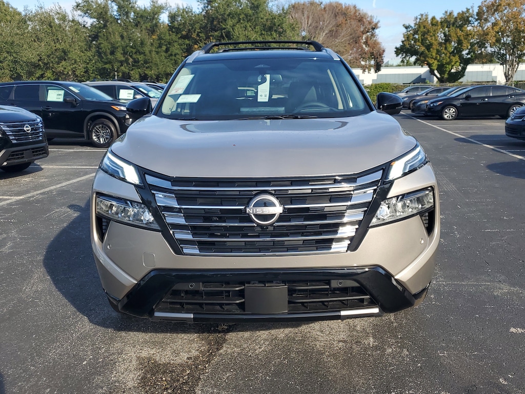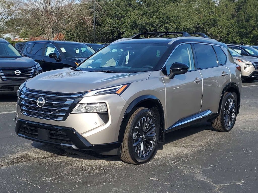New 2026 Nissan Rogue Platinum CHARCOAL QUILTED SEMI-ANILINE LEATHER-APPOINTED SEAT TRIM -inc: Perforated, [B94] BLACK SPLASH GUARDS (SET OF 4), [L93] FLOOR MATS W/2-PIECE CARGO AREA PROTECTOR -inc: seatback protector First Aid Kit, [B96] ROOF RAIL CROSS BARS, [P04] PLATINUM PREMIUM PACKAGE -inc: Heated Rear Seats Motion-Activated Power Liftgate Tri-Zone Automatic Temperature Control Head-Up Display, CHAMPAGNE SILVER METALLIC/SUPER BLACK, [B95] CHROME REAR BUMPER PROTECTOR, [E10] TWO-TONE PAINT, Turbocharged, Remote Engine Start, All Wheel Drive, Power Steering, ABS, 4-Wheel Disc Brakes, Brake Assist, Brake Actuated Limited Slip Differential, Aluminum Wheels, Tires - Front Performance, Tires - Rear Performance, Temporary Spare Tire, Sun/Moonroof, Generic Sun/Moonroof, Panoramic Roof, Heated Mirrors, Power Mirror(s), Integrated Turn Signal Mirrors, Rear Defrost, Privacy Glass, Intermittent Wipers, Variable Speed Intermittent Wipers, Rear Spoiler, Remote Trunk Release, Power Liftgate, Power Door Locks, Daytime Running Lights, Automatic Headlights, LED Headlights, Automatic Highbeams, AM/FM Stereo, Navigation System, Satellite Radio, MP3 Capability, Bluetooth Connection, Telematics, Auxiliary Audio Input, WiFi Hotspot, Smart Device Integration, Requires Subscription, MP3 Capability, Steering Wheel Audio Controls, Premium Sound System, Bluetooth Connection, Power Driver Seat, Power Passenger Seat, Bucket Seats, Heated Front Seat(s), Driver Adjustable Lumbar, Seat Memory, Pass-Through Rear Seat, Rear Bench Seat, Adjustable Steering Wheel, Trip Computer, Power Windows, WiFi Hotspot, Heated Steering Wheel, Keyless Entry, Power Door Locks, Keyless Entry, Power Door Locks, Keyless Start, Remote Trunk Release, Universal Garage Door Opener, Cruise Control, Adaptive Cruise Control, Climate Control, Multi-Zone A/C, A/C, Woodgrain Interior Trim, Leather Seats, Driver Vanity Mirror, Passenger Vanity Mirror, Driver Illuminated Vanity Mirror, Passenger Illuminated Visor Mirror, Auto-Dimming Rearview Mirror, Keyless Start, Smart Device Integration, Navigation System, Mirror Memory, Seat Memory, Power Windows, Power Door Locks, Trip Computer, Heads-Up Display, Mirror Memory, Seat Memory, Immobilizer, Security System, Cruise Control Steering Assist, Traction Control, Stability Control, Traction Control, Front Side Air Bag, Cross-Traffic Alert, Rear Collision Mitigation, Front Collision Mitigation, Driver Monitoring, Blind Spot Monitor, Lane Departure Warning, Lane Keeping Assist, Lane Departure Warning, Rear Parking Aid, Back-Up Camera, Aerial View Display System, Telematics, Requires Subscription, Tire Pressure Monitor, Driver Air Bag, Passenger Air Bag, Front Head Air Bag, Rear Head Air Bag, Passenger Air Bag Sensor, Front Side Air Bag, Rear Side Air Bag, Knee Air Bag, Child Safety Locks, Back-Up Camera