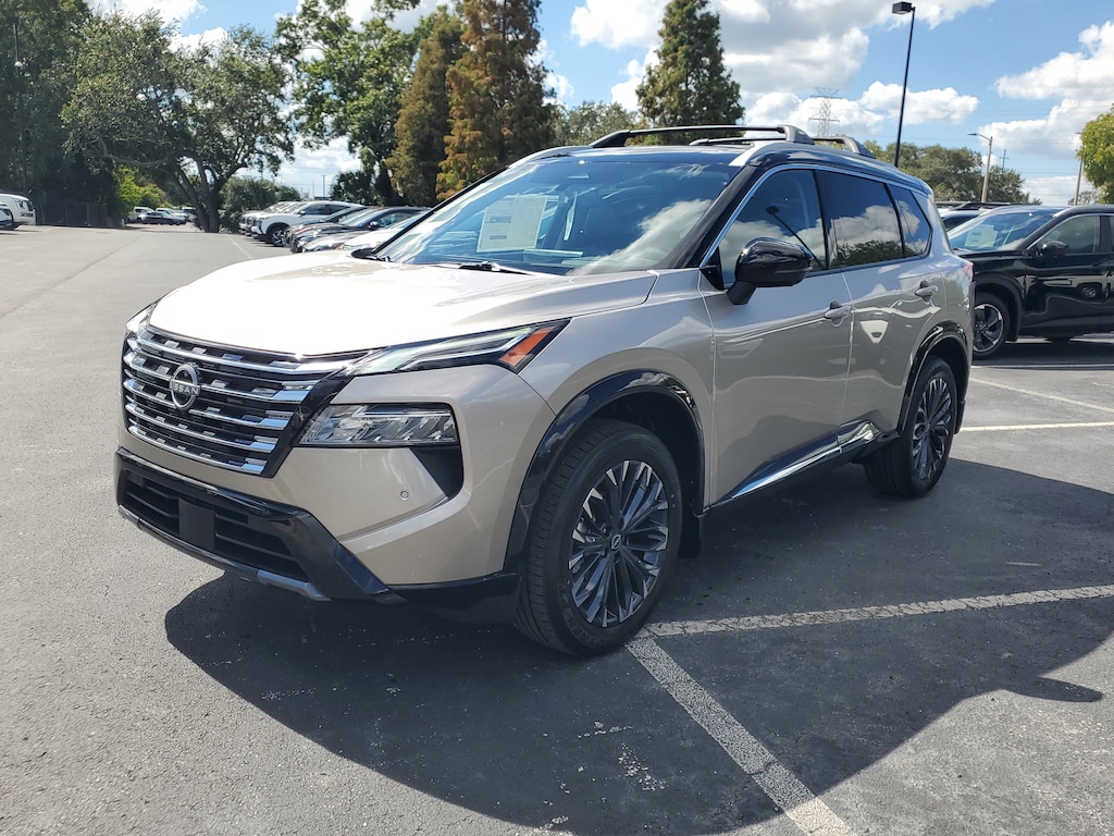 New 2026 Nissan Rogue Platinum CHARCOAL QUILTED SEMI-ANILINE LEATHER-APPOINTED SEAT TRIM -inc: Perforated, [B94] BLACK SPLASH GUARDS (SET OF 4), [L93] FLOOR MATS W/2-PIECE CARGO AREA PROTECTOR -inc: seatback protector First Aid Kit, [B96] ROOF RAIL CROSS BARS, [P04] PLATINUM PREMIUM PACKAGE -inc: Heated Rear Seats Motion-Activated Power Liftgate Tri-Zone Automatic Temperature Control Head-Up Display, [M92] RETRACTABLE CARGO COVER, CHAMPAGNE SILVER METALLIC/SUPER BLACK, [B95] CHROME REAR BUMPER PROTECTOR, [E10] TWO-TONE PAINT, [N92] ILLUMINATED KICK PLATES, Turbocharged, Remote Engine Start, All Wheel Drive, Power Steering, ABS, 4-Wheel Disc Brakes, Brake Assist, Brake Actuated Limited Slip Differential, Aluminum Wheels, Tires - Front Performance, Tires - Rear Performance, Temporary Spare Tire, Sun/Moonroof, Generic Sun/Moonroof, Panoramic Roof, Heated Mirrors, Power Mirror(s), Integrated Turn Signal Mirrors, Rear Defrost, Privacy Glass, Intermittent Wipers, Variable Speed Intermittent Wipers, Rear Spoiler, Remote Trunk Release, Power Liftgate, Power Door Locks, Daytime Running Lights, Automatic Headlights, LED Headlights, Automatic Highbeams, AM/FM Stereo, Navigation System, Satellite Radio, MP3 Capability, Bluetooth Connection, Telematics, Auxiliary Audio Input, WiFi Hotspot, Smart Device Integration, Requires Subscription, MP3 Capability, Steering Wheel Audio Controls, Premium Sound System, Bluetooth Connection, Power Driver Seat, Power Passenger Seat, Bucket Seats, Heated Front Seat(s), Driver Adjustable Lumbar, Seat Memory, Pass-Through Rear Seat, Rear Bench Seat, Adjustable Steering Wheel, Trip Computer, Power Windows, WiFi Hotspot, Heated Steering Wheel, Keyless Entry, Power Door Locks, Keyless Entry, Power Door Locks, Keyless Start, Remote Trunk Release, Universal Garage Door Opener, Cruise Control, Adaptive Cruise Control, Climate Control, Multi-Zone A/C, A/C, Woodgrain Interior Trim, Leather Seats, Driver Vanity Mirror, Passenger Vanity Mirror, Driver Illuminated Vanity Mirror, Passenger Illuminated Visor Mirror, Auto-Dimming Rearview Mirror, Keyless Start, Smart Device Integration, Navigation System, Mirror Memory, Seat Memory, Power Windows, Power Door Locks, Trip Computer, Heads-Up Display, Mirror Memory, Seat Memory, Immobilizer, Security System, Cruise Control Steering Assist, Traction Control, Stability Control, Traction Control, Front Side Air Bag, Cross-Traffic Alert, Rear Collision Mitigation, Front Collision Mitigation, Driver Monitoring, Blind Spot Monitor, Lane Departure Warning, Lane Keeping Assist, Lane Departure Warning, Rear Parking Aid, Back-Up Camera, Aerial View Display System, Telematics, Requires Subscription, Tire Pressure Monitor, Driver Air Bag, Passenger Air Bag, Front Head Air Bag, Rear Head Air Bag, Passenger Air Bag Sensor, Front Side Air Bag, Rear Side Air Bag, Knee Air Bag, Child Safety Locks, Back-Up Camera