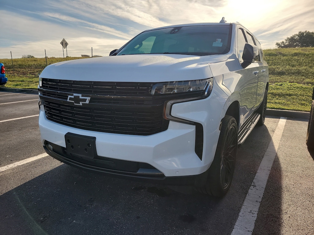 THIS VEHCILE INCLUDES THE FOLLOWING OPTIONS AND FEATURES: License Plate Front Mounting Package, Preferred Equipment Group 1LZ (12-Way Power Driver & Passenger Seat Adjusters, 1st & 2nd Row Color-Keyed Carpeted Floor Mats, 2 USB Data Ports, 3rd Row 60/40 Power-Folding Split-Bench, Auto-Dimming Inside Rear-View Mirror, Automatic Heated Steering Wheel, Bose 10-Speaker Surround w/CenterPoint, Bright Front & Rear Door Sill Plates, Chrome Door Handles w/Body-Color Strip, Chrome Mirror Caps, Color-Keyed Carpeting Floor Covering, Driver & Front Outboard Passenger Airbags, Dual Exhaust System, Enhanced Driver Information Center, Floor Console w/Storage Area, Front & Rear Park Assist, Hands-Free Rear Power Programmable Liftgate, HD Radio, Heated & Ventilated Driver & Front Passenger Seats, Heated 2nd Row Outboard Seats, Heated Driver & Front Passenger Seats, Infotainment Display, Lane Change Alert w/Side Blind Zone Alert, Lane Keep Assist w/Lane Departure Warning, Leather-Wrapped Steering Wheel, LED Daytime Running Lamps, Memory Settings, Outside Heated Power-Adjustable Mirrors, Power Release 2nd Row Bucket Seats, Power Tilt & Telescopic Steering Column, Rear Cross Traffic Alert, Remote Start, Safety Alert Seat, SiriusXM Radio w/360L, and Universal Home Remote), 10 Speakers, 20" x 9" Polished Aluminum Wheels, 3.23 Rear Axle Ratio, 3rd row seats: split-bench, 4-Wheel Disc Brakes, ABS brakes, Adaptive suspension, Air Conditioning, Alloy wheels, AM/FM radio: SiriusXM with 360L, Apple CarPlay/Android Auto, Auto High-beam Headlights, Auto-dimming door mirrors, Auto-dimming Rear-View mirror, Auto-leveling suspension, Automatic temperature control, Brake assist, Bumpers: body-color, Compass, Delay-off headlights, Driver door bin, Driver vanity mirror, Dual front impact airbags, Dual front side impact airbags, Electronic Stability Control, Emergency communication system: OnStar and Chevrolet connected services capable, Four wheel independent suspension, Front anti-roll bar, Front Bucket Seats, Front Center Armrest, Front dual zone A/C, Front reading lights, Fully automatic headlights, Garage door transmitter, Heated door mirrors, Heated front seats, Heated rear seats, Heated steering wheel, Illuminated entry, Leather steering wheel, Low tire pressure warning, Magnetic Ride Control Suspension, Memory seat, Navigation System, Occupant sensing airbag, Outside temperature display, Overhead airbag, Overhead console, Panic alarm, Passenger door bin, Passenger vanity mirror, Perforated Leather Seating Surfaces, Power door mirrors, Power driver seat, Power Liftgate, Power passenger seat, Power steering, Power windows, Premium audio system: Chevrolet Infotainment 3 Premium, Radio: Chevrolet Infotainment 3 Premium System, Rain sensing wipers, Rear air conditioning, Rear anti-roll bar, Rear reading lights, Rear window defroster, Rear window wiper, Remote keyless entry, Roof rack: rails only, Security system, Speed control, Speed-sensing steering, Split folding rear seat, Spoiler, Steering wheel memory, Steering wheel mounted audio controls, Tachometer, Telescoping steering wheel, Tilt steering wheel, Traction control, Trip computer, Turn signal indicator mirrors, Variably intermittent wipers, Ventilated front seats, Voltmeter, Wheel Locks (Set of 4) (LPO), and Wheels: 22" x 9" Polished Aluminum.