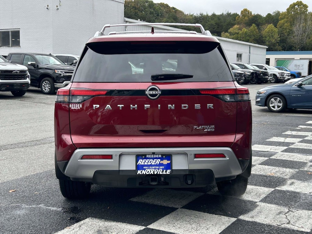 Recent Arrival! 4WD.Reeder Chevrolet is pleased to offer you this beautiful-looking 2024 Nissan Pathfinder with the following options and features Cargo Package (Cargo Area Protector, Cargo Net, and First Aid Kit), Platinum Captain Chairs Package (2nd-Row Captain Chairs and 2nd-Row Rear Headrest), 4WD, 13 Speakers, 3rd row seats: bench, 4-Wheel Disc Brakes, ABS brakes, Air Conditioning, Alloy wheels, AM/FM radio: SiriusXM, Auto High-beam Headlights, Auto tilt-away steering wheel, Auto-dimming Rear-View mirror, Automatic temperature control, Axle Ratio: 4.334, Black Splash Guards (Set of 4), Bodyside moldings, Bose Premium Audio System, Brake assist, Bumpers: body-color, Captain's Chairs Carpeted Floor Mats (Set of 4), Cross Bars, Delay-off headlights, Driver door bin, Driver vanity mirror, Dual front impact airbags, Dual front side impact airbags, Electronic Stability Control, Emergency communication system, Exterior Parking Camera Rear, Four wheel independent suspension, Front anti-roll bar, Front Bucket Seats, Front Center Armrest, Front dual zone A/C, Front reading lights, Fully automatic headlights, Garage door transmitter: HomeLink, Heads-Up Display, Heated & Cooled Front Bucket Seats, Heated door mirrors, Heated front seats, Heated rear seats, Heated steering wheel, Illuminated entry, Knee airbag, Leather steering wheel, Low tire pressure warning, Memory seat, Navigation system: NissanConnect with Navigation and Services, NissanConnect featuring Apple CarPlay and Android Auto, NissanConnect w/Navigation & Services, Occupant sensing airbag, Outside temperature display, Overhead airbag, Overhead console, Panic alarm, Passenger door bin, Passenger vanity mirror, Power door mirrors, Power driver seat, Power Liftgate, Power moonroof, Power passenger seat, Power steering, Power windows, Radio data system, Radio: AM/FM Audio System, Rain sensing wipers, Rear air conditioning, Rear anti-roll bar, Rear reading lights, Rear seat center armrest, Rear side impact airbag, Rear window defroster, Rear window wiper, Reclining 3rd row seat, Remote keyless entry, Security system, Semi-Aniline Leather-Appointed Seating Surfaces, Speed control, Speed-sensing steering, Speed-Sensitive Wipers, Split folding rear seat, Spoiler, Steering wheel memory, Steering wheel mounted audio controls, Tachometer, Telescoping steering wheel, Tilt steering wheel, Traction control, Trip computer, Turn signal indicator mirrors, Variably intermittent wipers, Ventilated front seats, and Wheels: 20" x 8J Machined Alloy.Please call to check on the availability of this vehicle. We will buy your vehicle, even if you do not buy ours.
