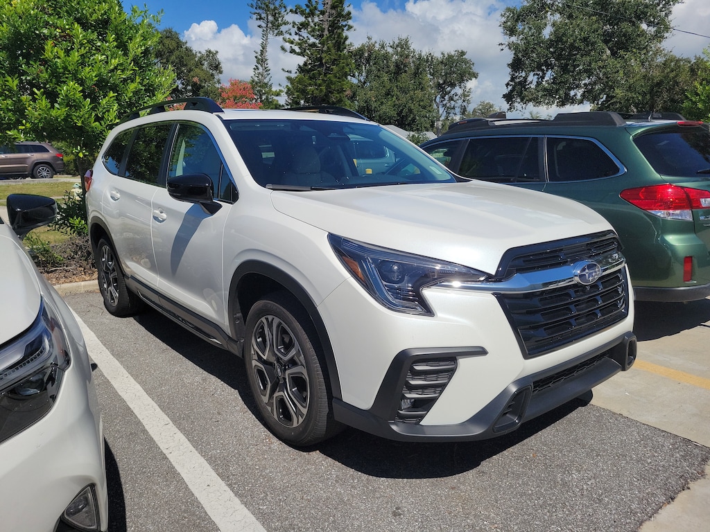 THIS VEHICLE INCLUDES THE FOLLOWING FEATURES AND OPTIONS: Subaru Certified Pre-Owned Certified, 14 Speakers, 20" Dk Gray Alloy w/Machine Finish Wheels, 3rd row seats: bench, 4-Wheel Disc Brakes, ABS brakes, Air Conditioning, Alloy Wheels, AM/FM radio: SiriusXM with 360L, Apple CarPlay & Android Auto, Auto High-beam Headlights, Auto-dimming Rear-View mirror, Automatic temperature control, Brake assist, Bumpers: body-color, Compass, Delay-off headlights, Driver door bin, Driver vanity mirror, Dual front impact airbags, Dual front side impact airbags, Electronic Stability Control, Emergency communication system: MySubaru Safety (3-year free trial), Exterior Parking Camera Rear, Four wheel independent suspension, Front anti-roll bar, Front Bucket Seats, Front Center Armrest, Front dual zone A/C, Front fog lights, Front reading lights, Fully automatic headlights, Garage door transmitter: HomeLink, harman/kardon® Speakers, Heated door mirrors, Heated Front Bucket Seats, Heated front seats, Heated rear seats, Heated steering wheel, Illuminated entry, Knee airbag, Leather Shift Knob, Leather steering wheel, Low tire pressure warning, Memory seat, Navigation System, Occupant sensing airbag, Outside temperature display, Overhead airbag, Overhead console, Panic alarm, Passenger door bin, Passenger vanity mirror, Perforated Leather-Trimmed Upholstery, Power door mirrors, Power driver seat, Power Liftgate, Power moonroof, Power passenger seat, Power steering, Power windows, Radio data system, Radio: Subaru 11.6" Multimedia System w/Navigation, Rear air conditioning, Rear anti-roll bar, Rear reading lights, Rear window defroster, Rear window wiper, Reclining 3rd row seat, Remote keyless entry, Security system, Speed control, Speed-sensing steering, Split folding rear seat, Spoiler, Steering wheel mounted audio controls, Tachometer, Telescoping steering wheel, Tilt steering wheel, Traction control, Trip computer, Turn signal indicator mirrors, and Variably intermittent wipers.